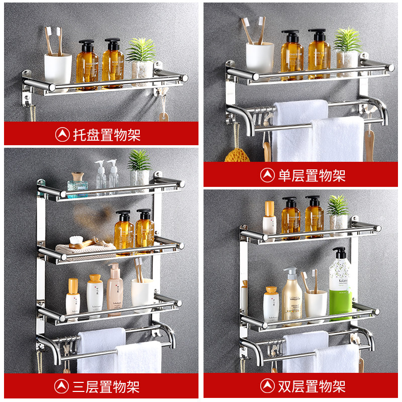 📚 浴室置物架免打孔不锈钢304壁挂式洗手间厕所卫生间 凉毛巾的架子