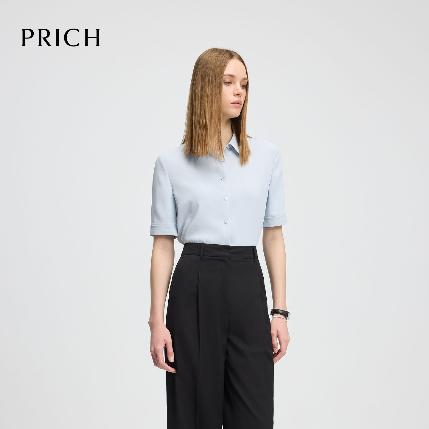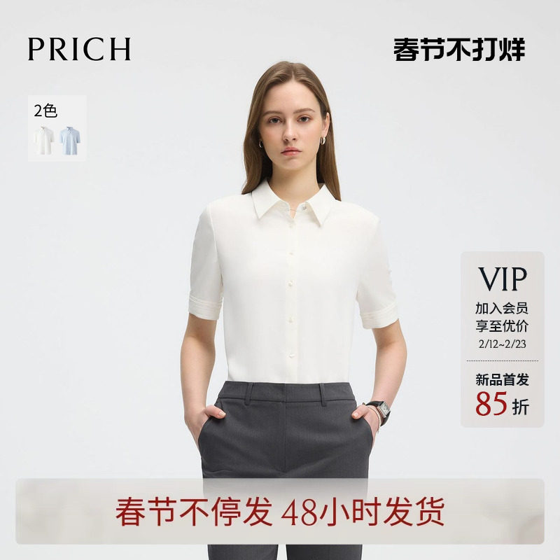 📚 PRICH简约纯色翻领正肩短袖衬衫2026春季新款清爽淡雅通勤上衣女