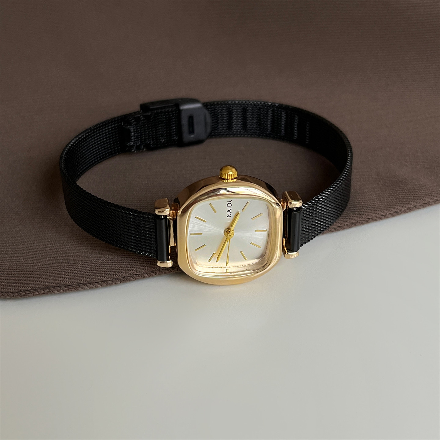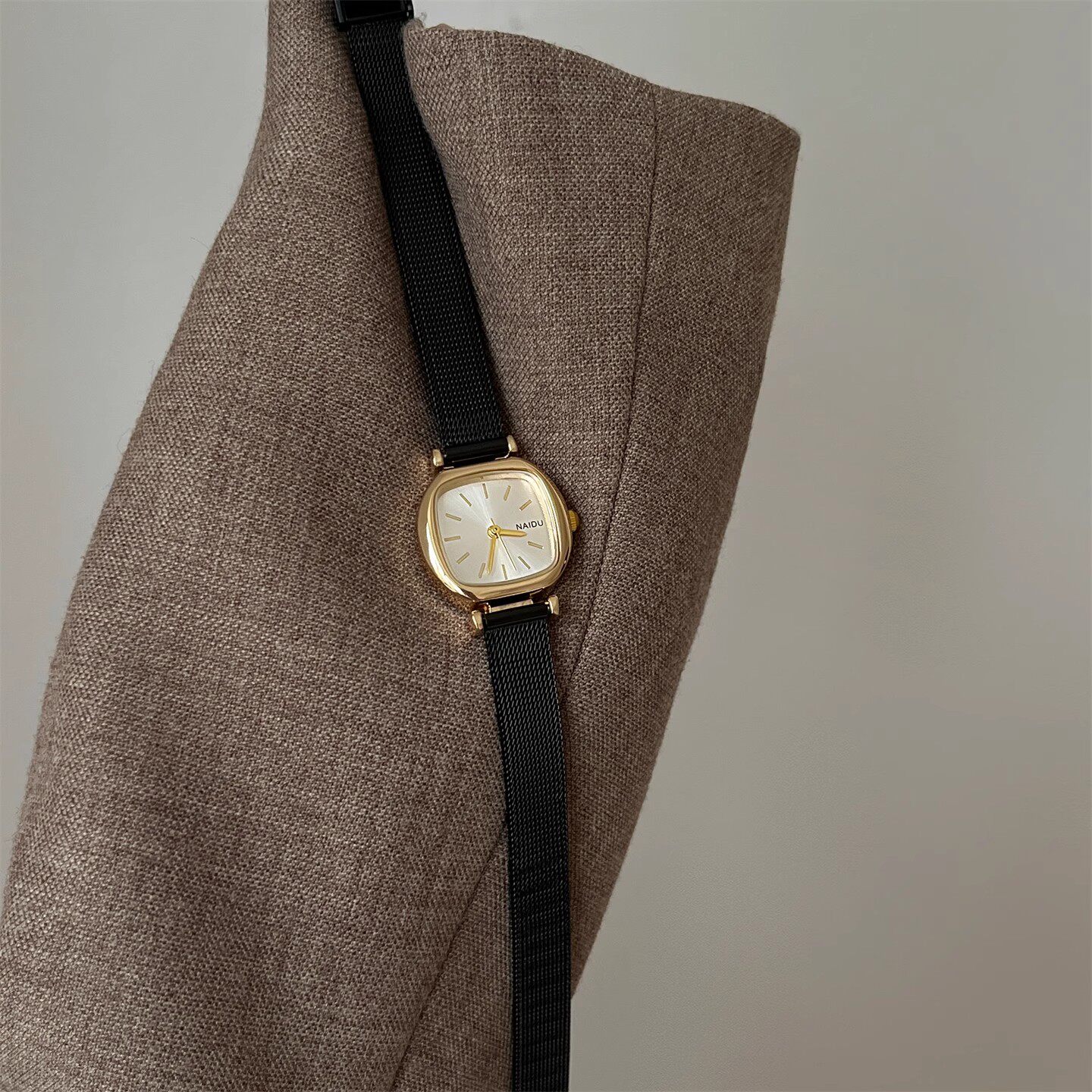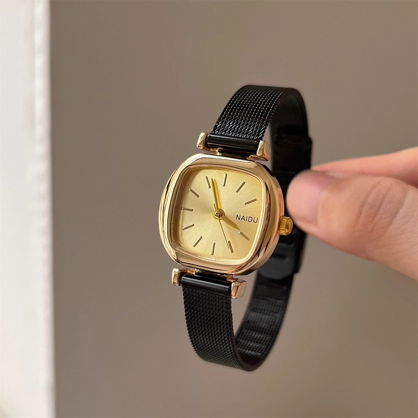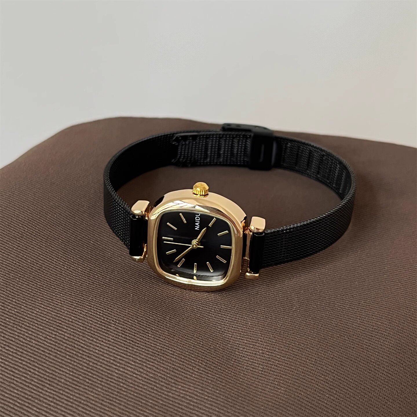 📚 姬妮诗嫚黑金小方糖手表女款ins轻奢简约小众设计复古小表盘女表