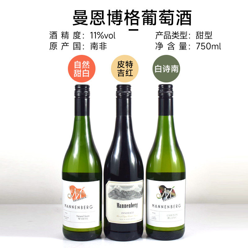 📚 南非Mannenberg曼恩博格 皮特吉干红/自然甜白/白诗南干白葡萄酒