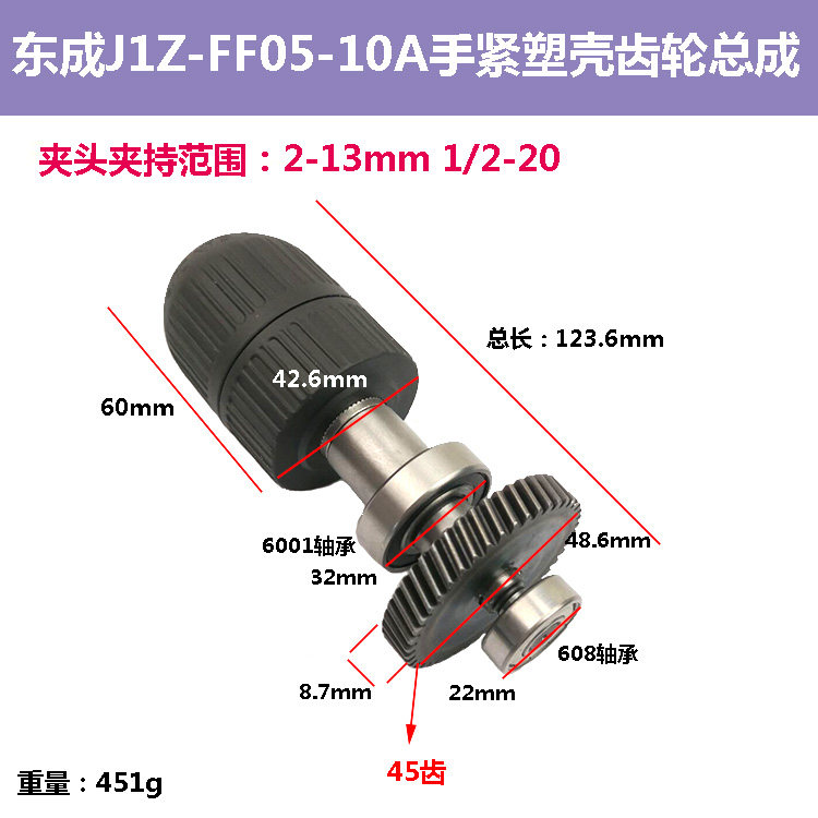 📚 适配东成J1Z-FF05-10A手电钻齿轮输出轴钻夹头轴承总成配配件45齿