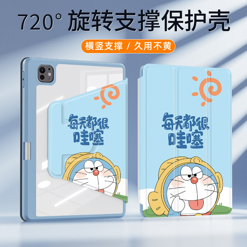 📚 旋转ipad保护套pro保护壳2024款ipad9/10适用苹果ipadair6/5/4/3/2平板mini7第9代10.9/11/13英寸外笔槽2018