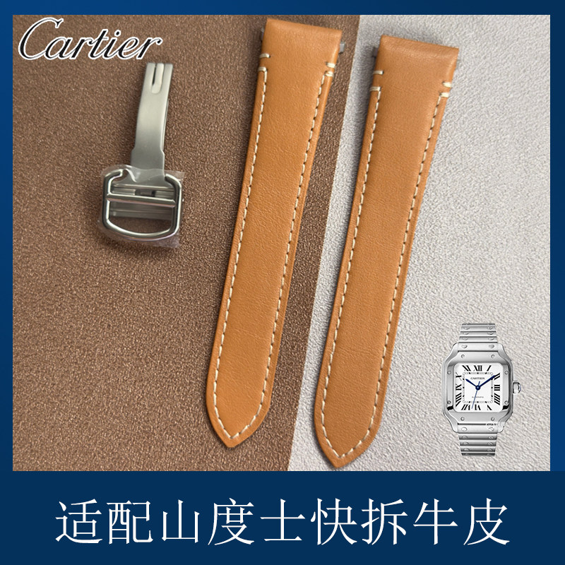 💥种草新货!新款适配原装卡地亚山度士表带头层牛皮真皮男女精钢快拆表链配件,券后价380,魅力无法抗拒!