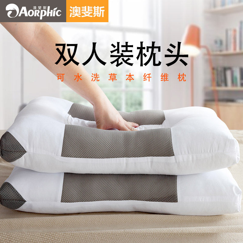 📚 一对装决明子枕头双人低枕护颈椎枕芯硬家用助睡眠整头单人枕头芯