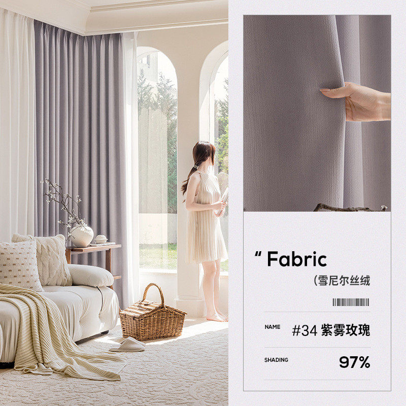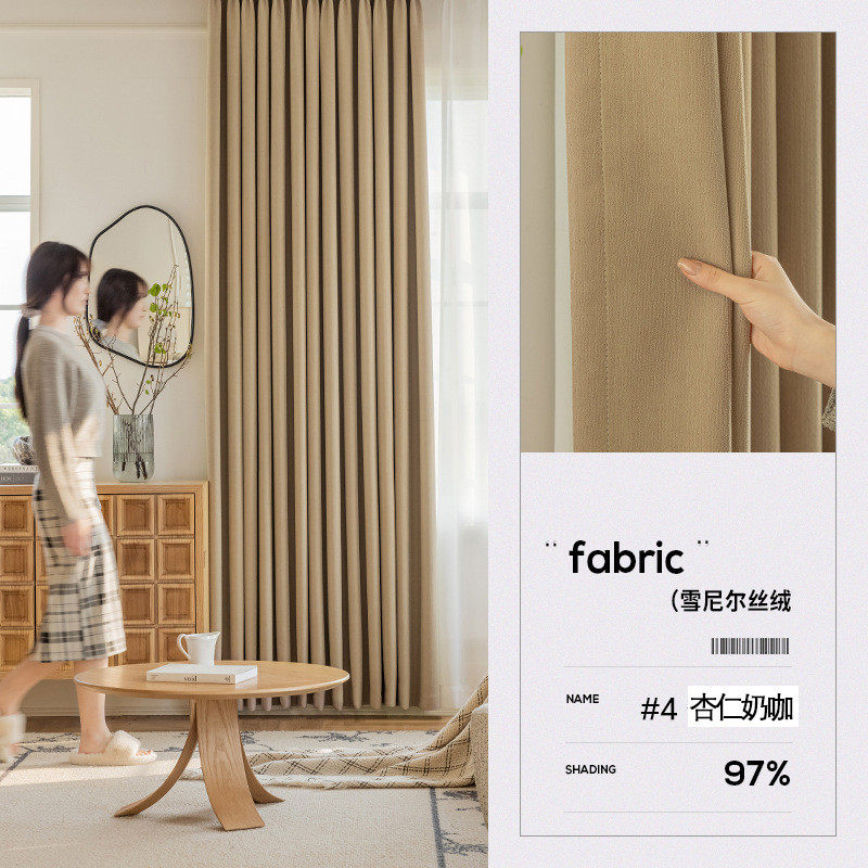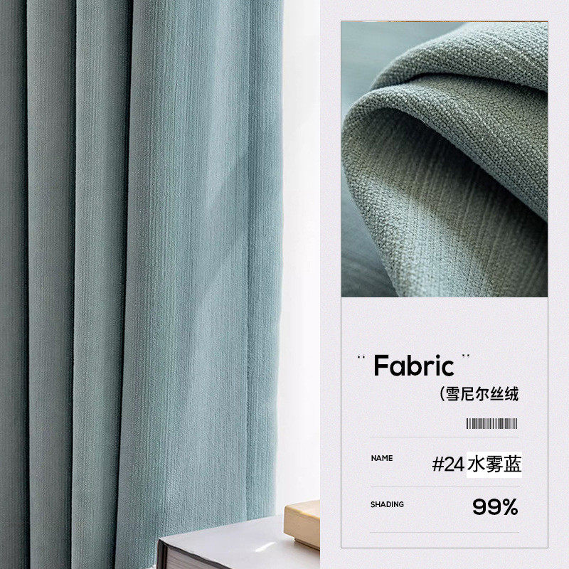 📚 家用橄榄绿窗帘奶油丝绒全遮光客厅卧室复古雪尼尔遮光窗帘布成品
