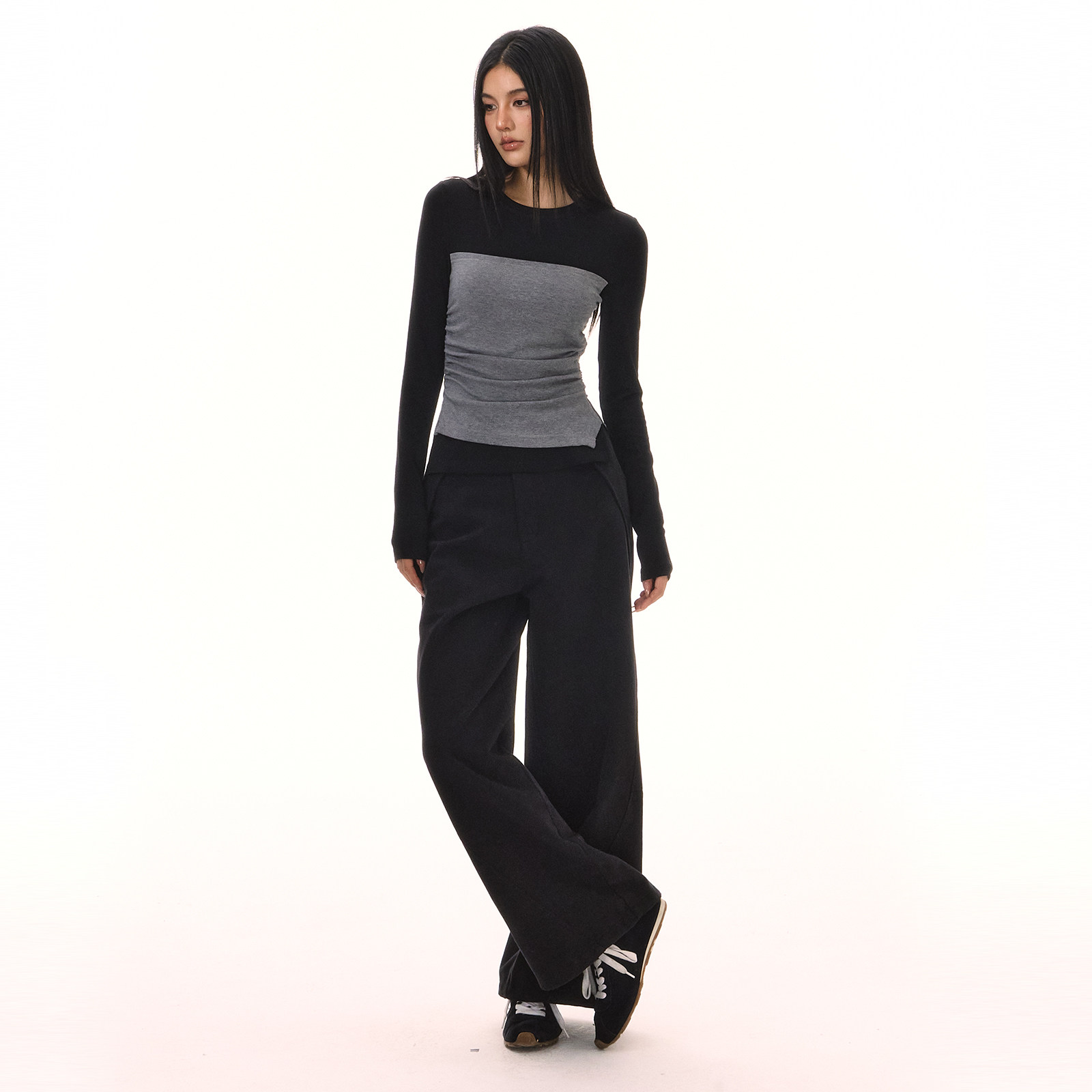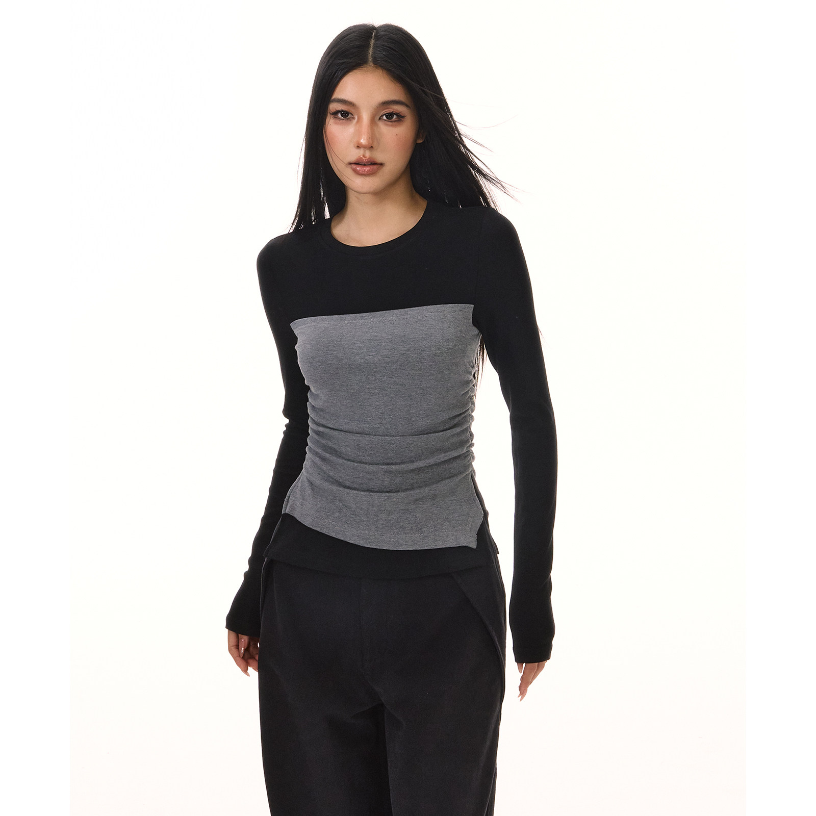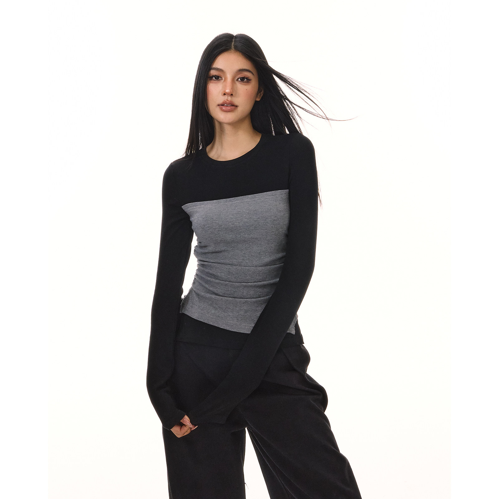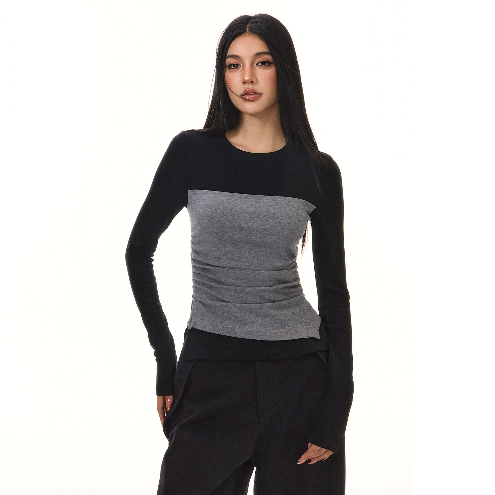 📚 ACMEAURA假两件拼接打底衫女秋冬不规则收腰内搭正肩显瘦抹胸上衣