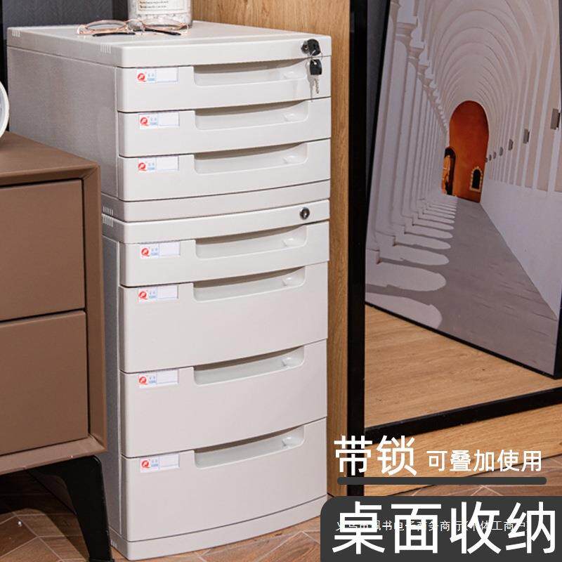 📚 办公室4文件夹收纳盒带锁塑料文件盒抽屉式整理箱多层桌面收纳柜