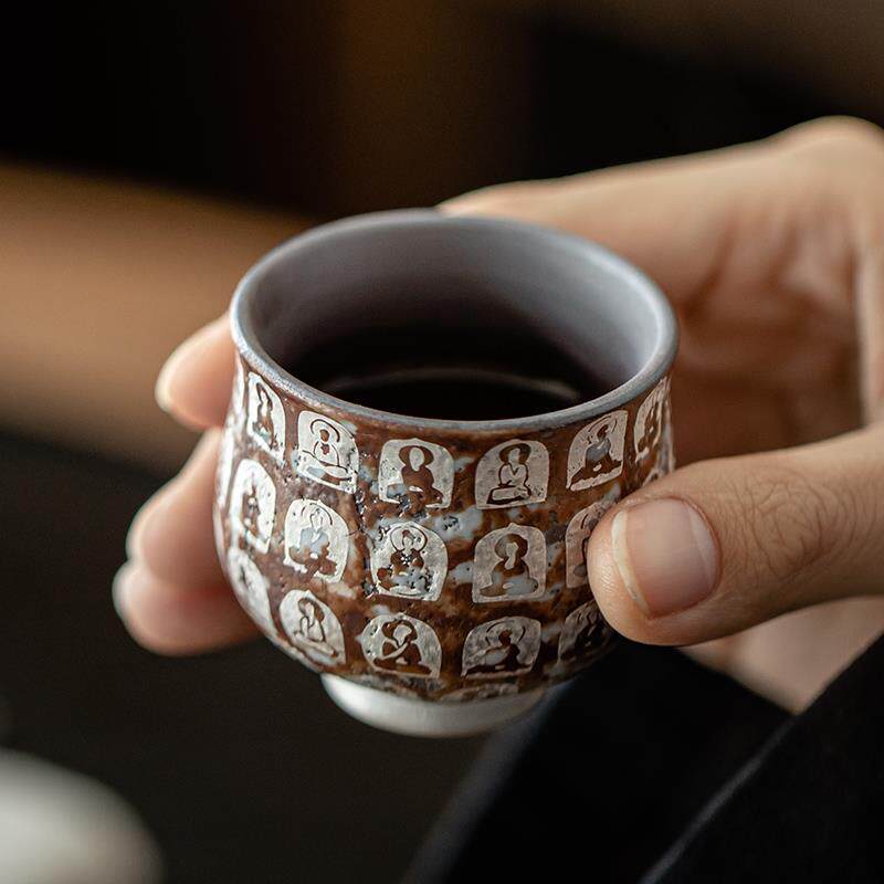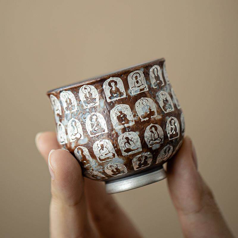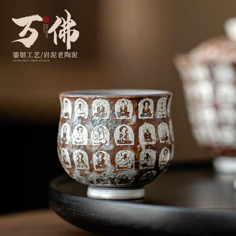 📚 蕴华堂敦煌文创复古老岩泥茶杯万佛鎏银主人杯功夫茶具陶瓷品茗杯