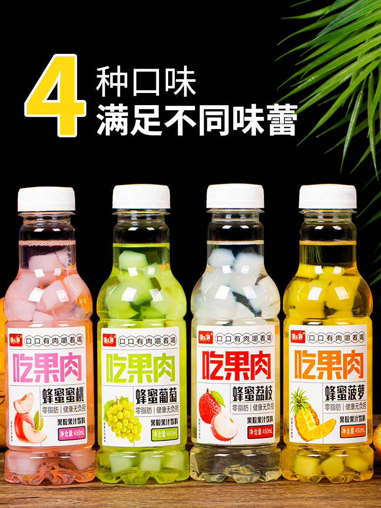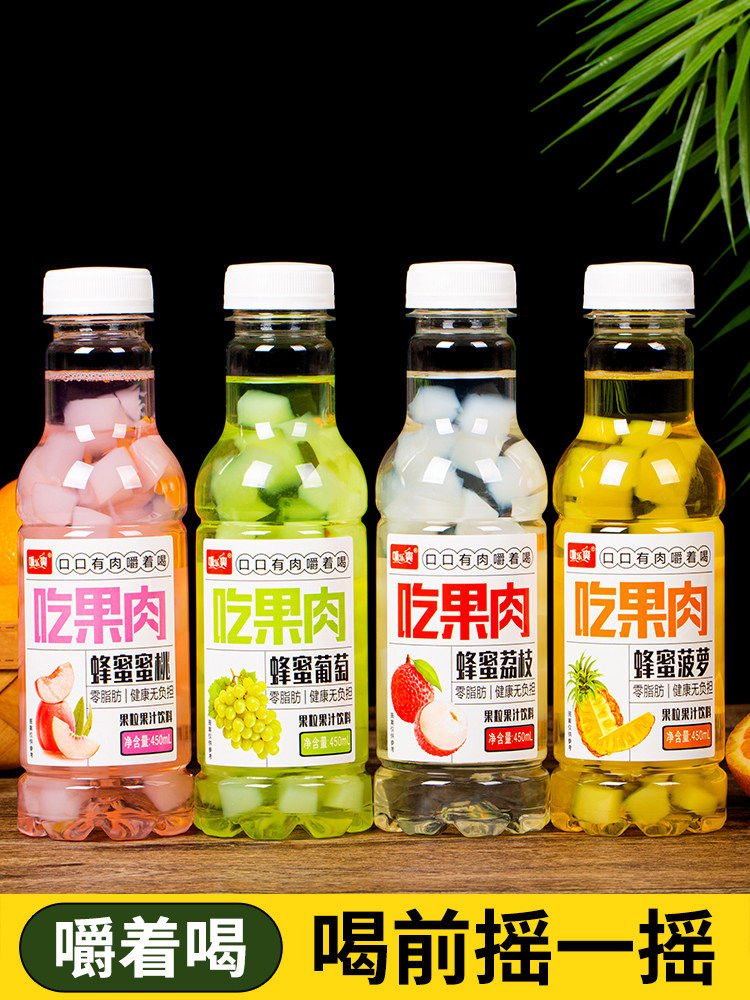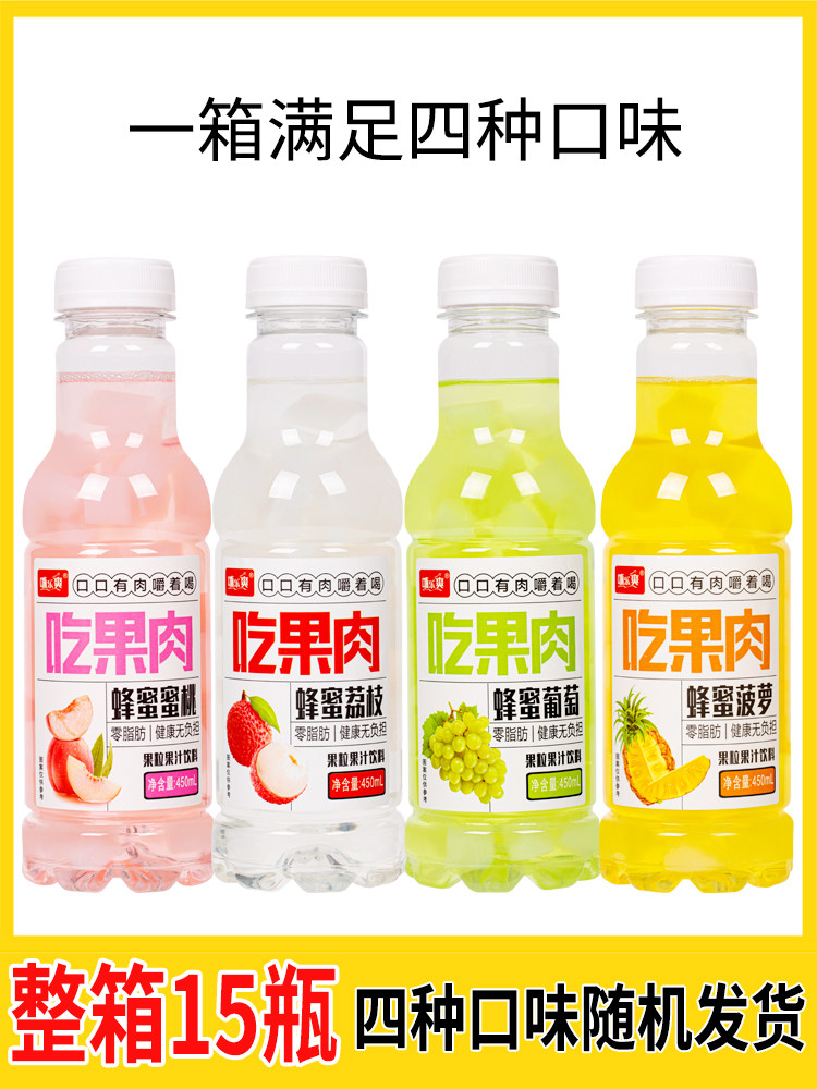 📚 大果粒果肉多瓶装果汁饮料450ml*15瓶整箱特价蜂蜜菠萝葡萄荔枝味