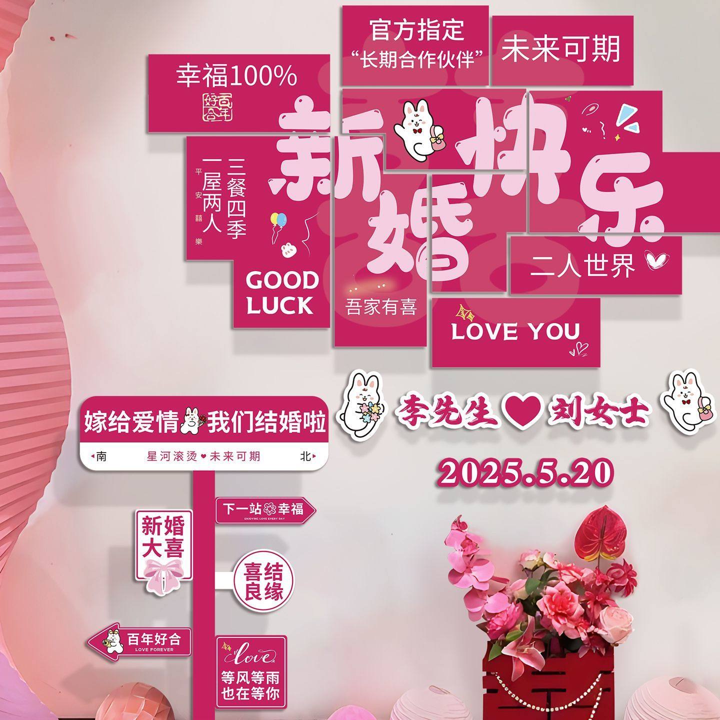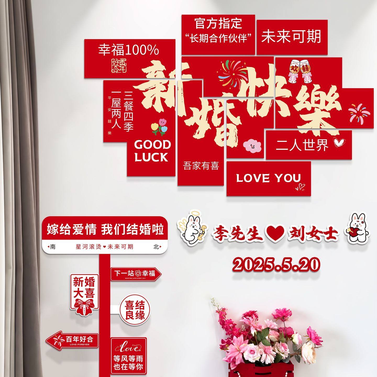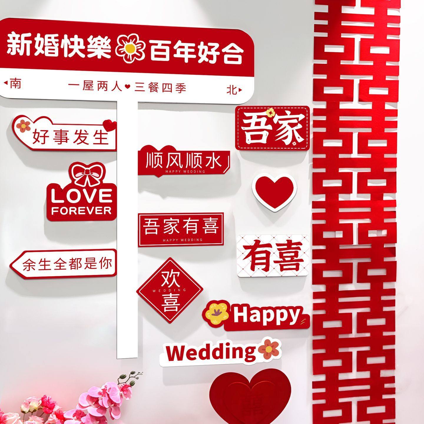📚 婚房布置套装网红打卡背景墙kt板路牌路标创意囍客厅结婚楼梯装饰