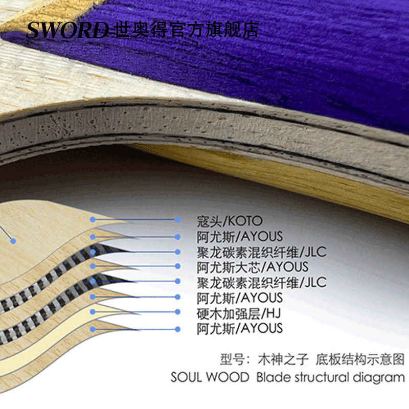 📚 Sword世奥得新款乒乓球底板木神之子纤维球拍底板弧圈快攻生胶板