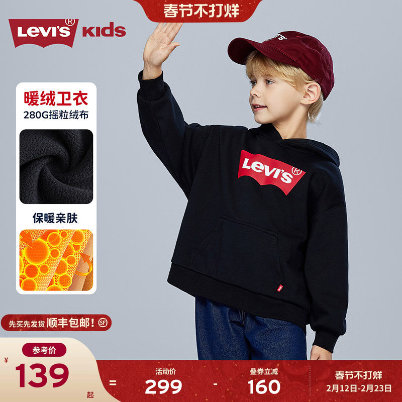 📚 【加绒】Levi's李维斯儿童童装卫衣2026冬新款男女童连帽长袖女
