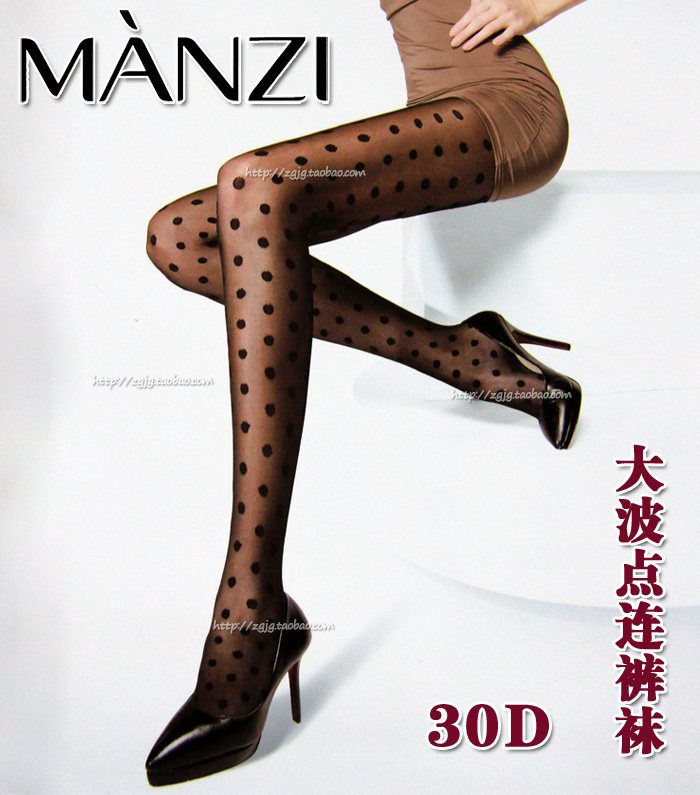 📚 美丫美 丝袜 Manzi曼姿30D大波点连裤袜圆点包芯丝黑色性感女袜