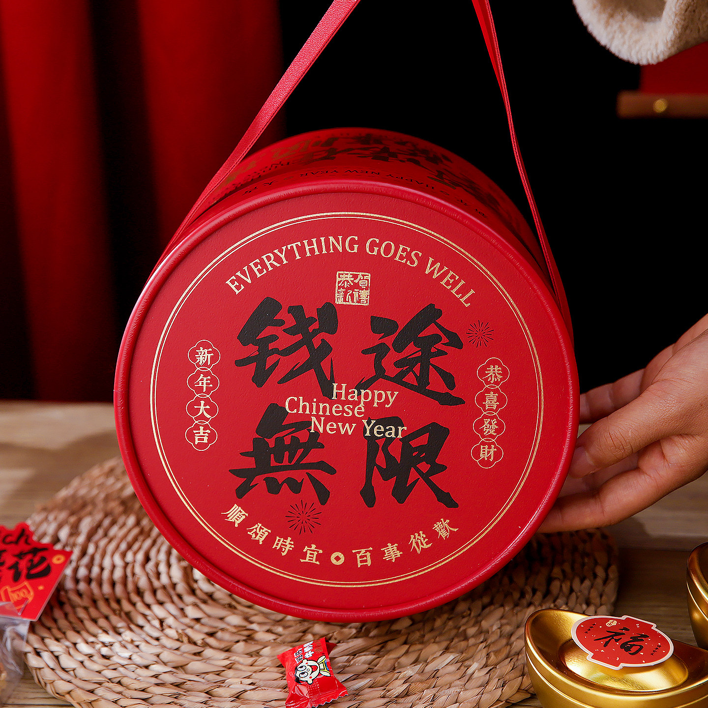 📚 新年抱抱桶雪花酥包装盒饼干盒太妃糖马年货礼盒手提礼品盒手拎桶