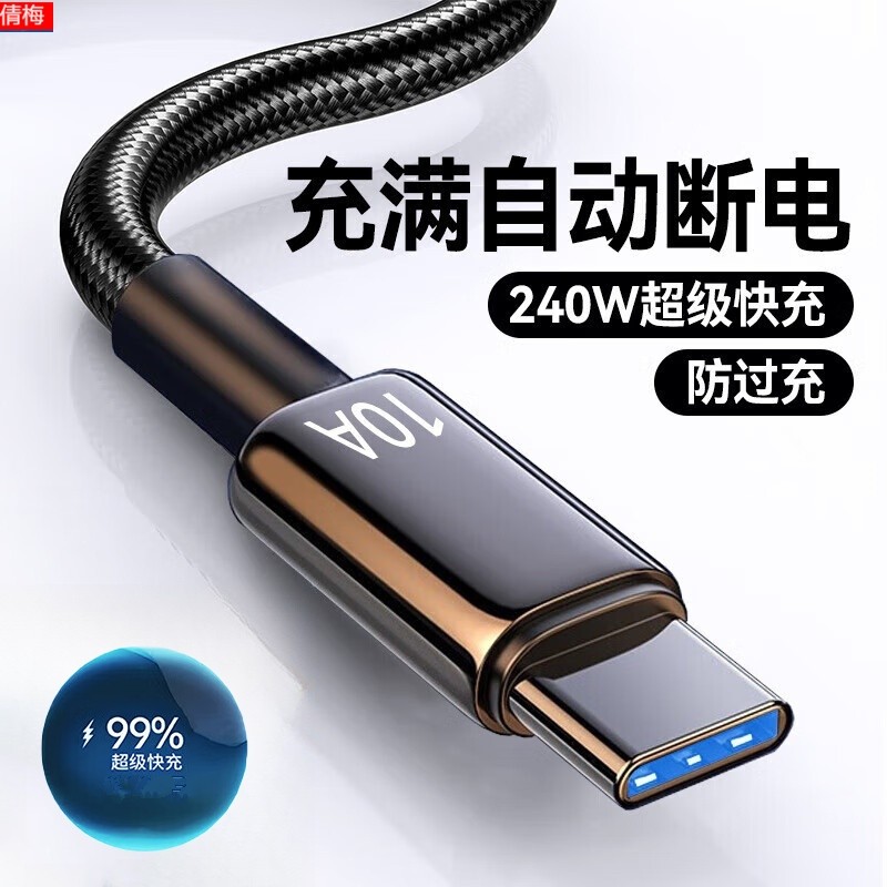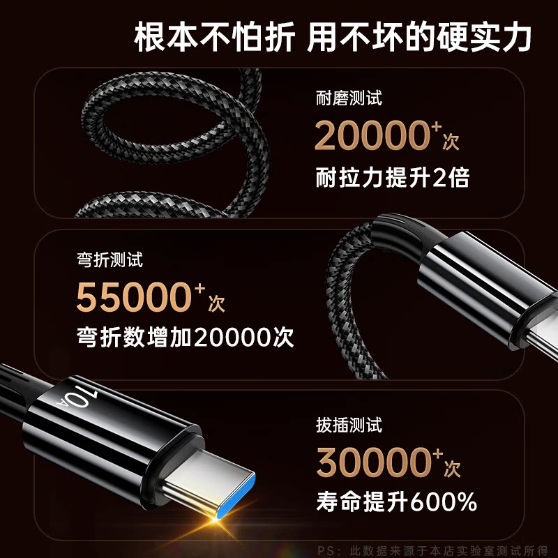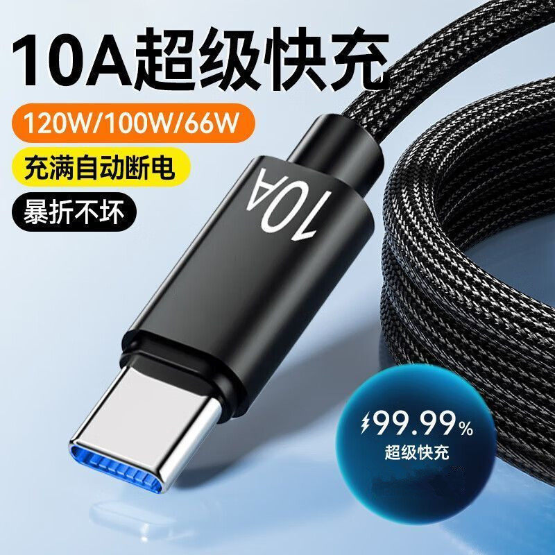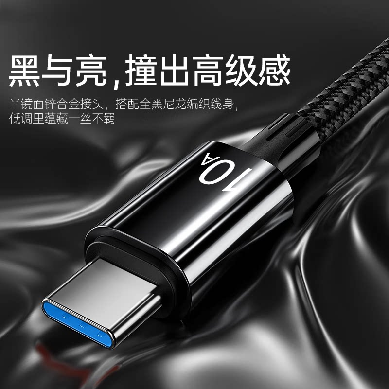 📚 10A超级快充线适用华为/荣耀/vivo扁圆typec口闪充数据线车载充电器240w