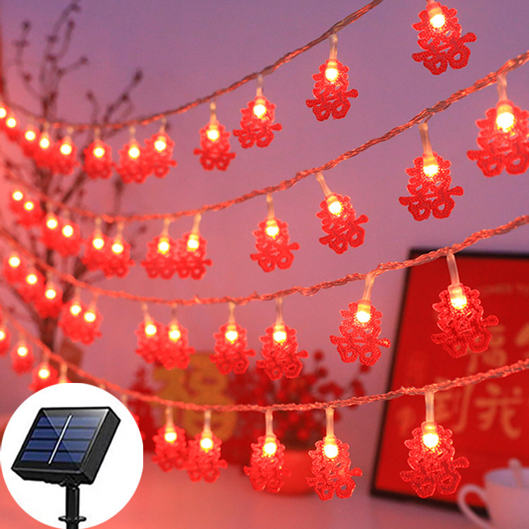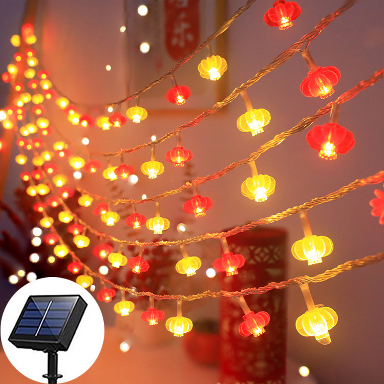 📚 太阳能户外灯庭院花园阳台布置春节发光红灯笼灯串农村小院装饰灯