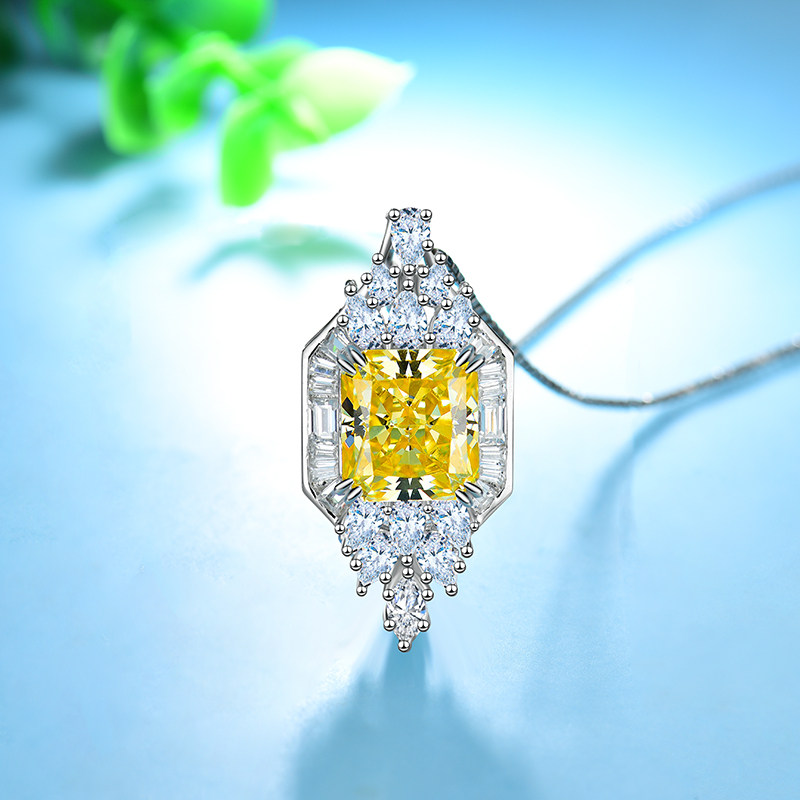 📚 卓蝶珠宝精工黄钻吊坠超闪雷迪恩黄色钻石项链闪耀百搭镀金银饰女