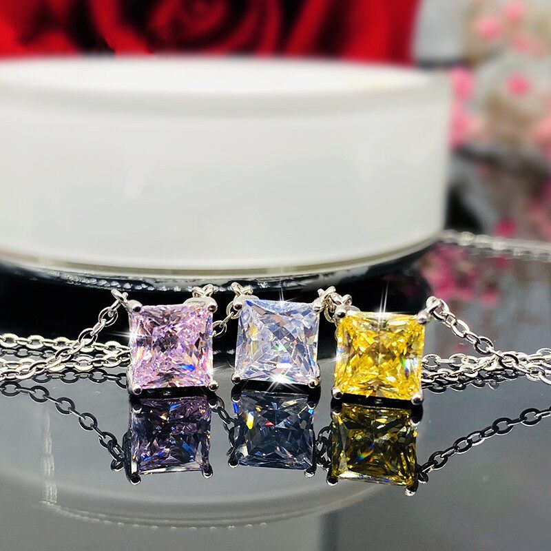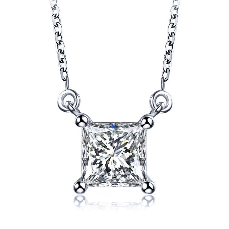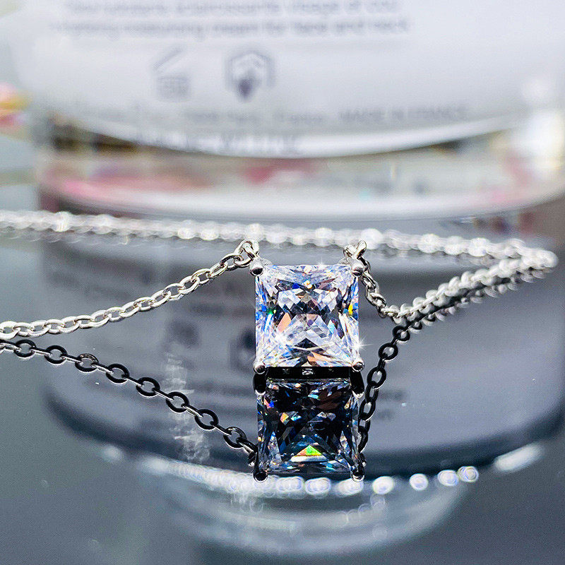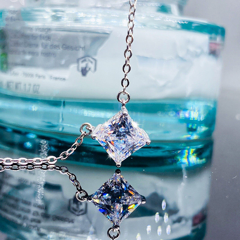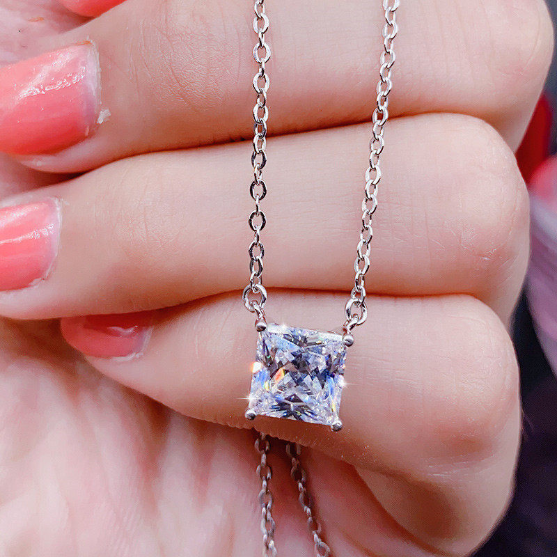 📚 单钻公主方气质白钻锁骨链18K白金黄钻时尚莫桑石1克拉纯银项链女
