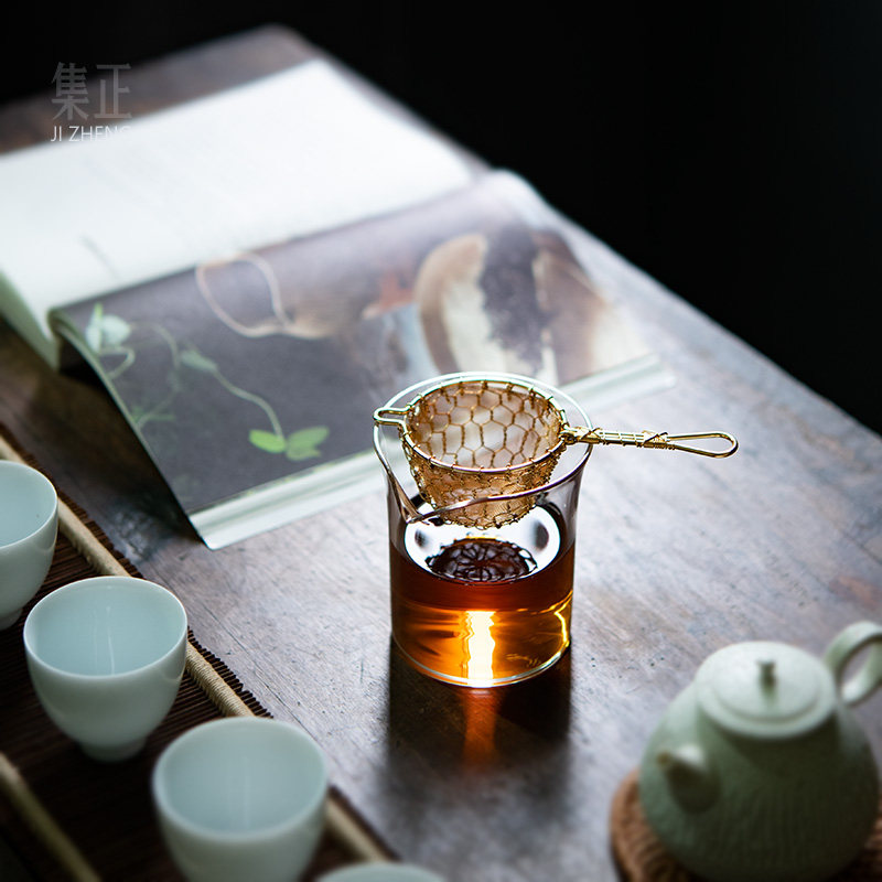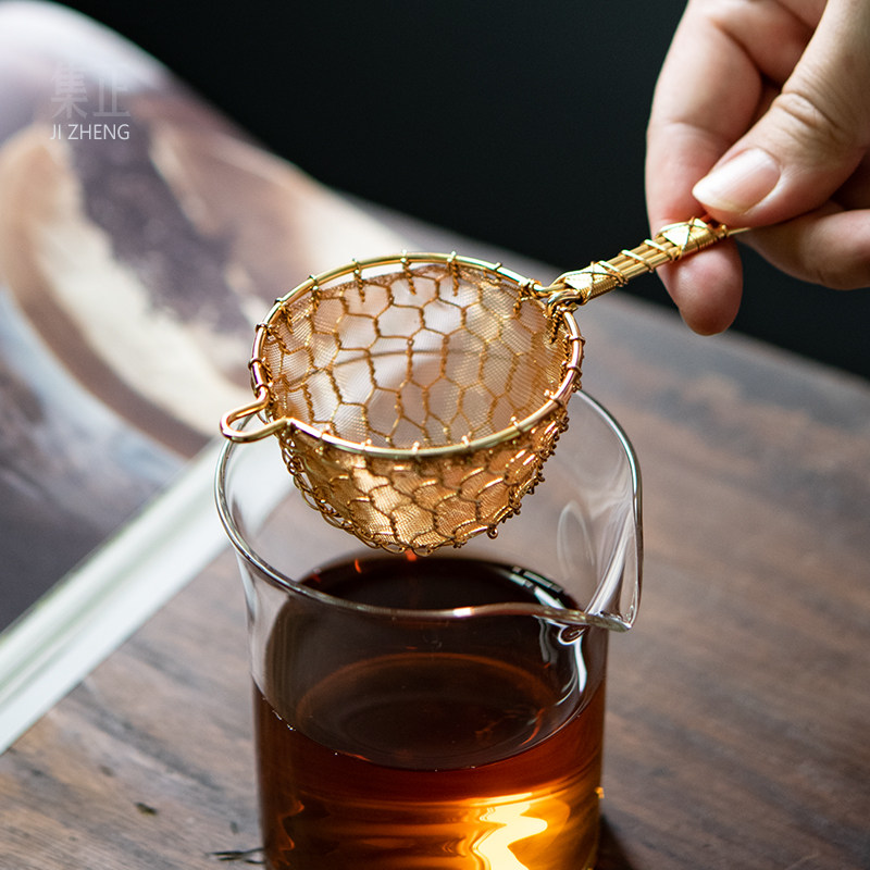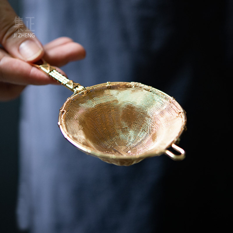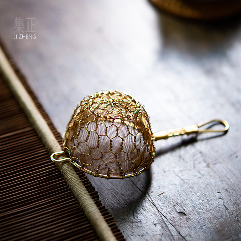 📚 集正 黄铜编织茶滤 手工纯铜茶漏铜丝网过滤器漏斗功夫茶道零配件