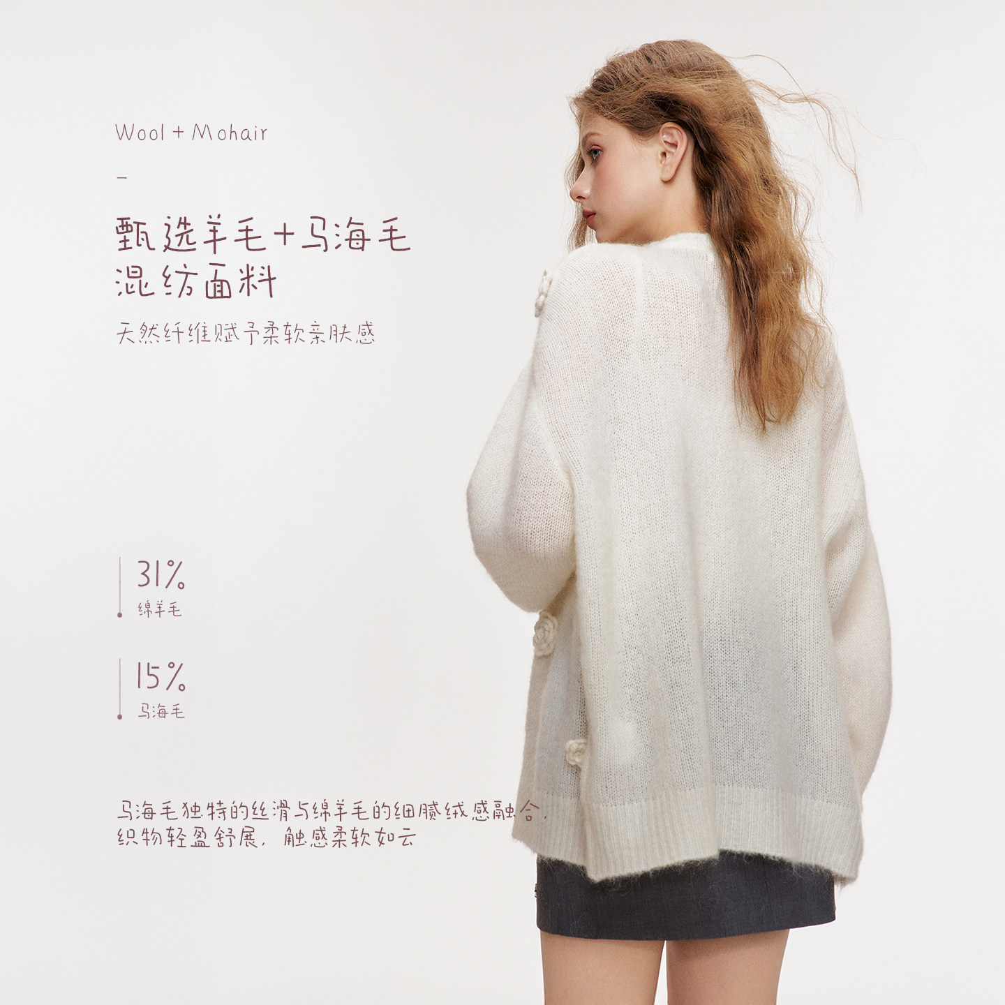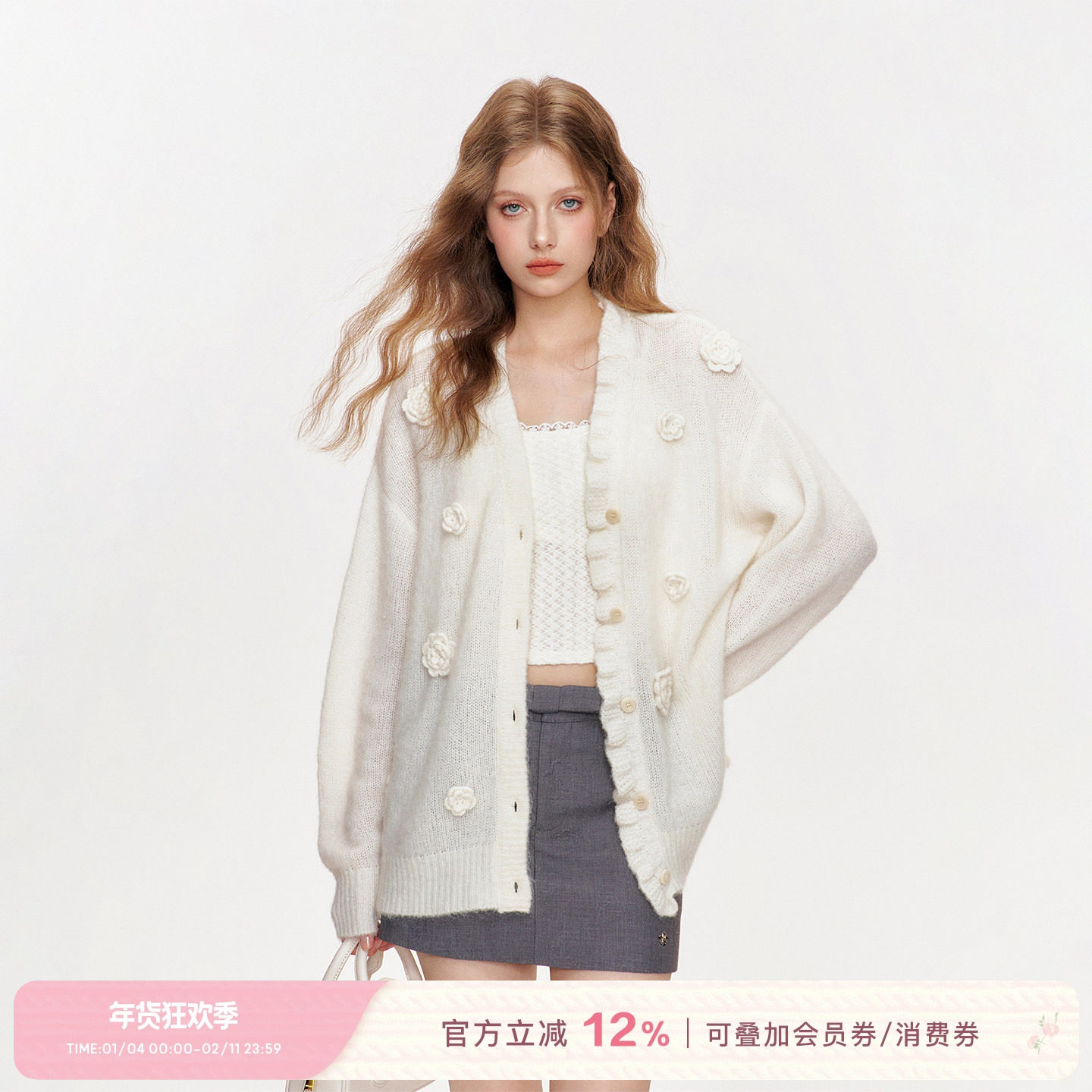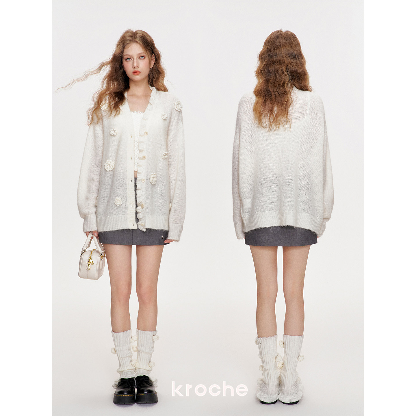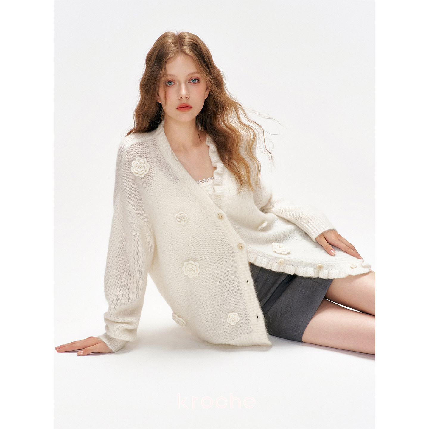 📚 赵今麦同款 Kroche 玫瑰花圃 羊毛针织钩花木耳花边毛衣外套初春