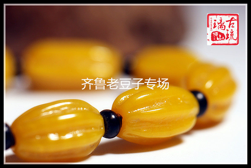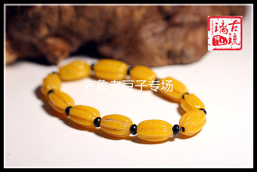 📚 博山老琉璃珠子12*18mm鸡油黄橄榄琉璃南瓜珠全品包浆枣形瓜棱珠