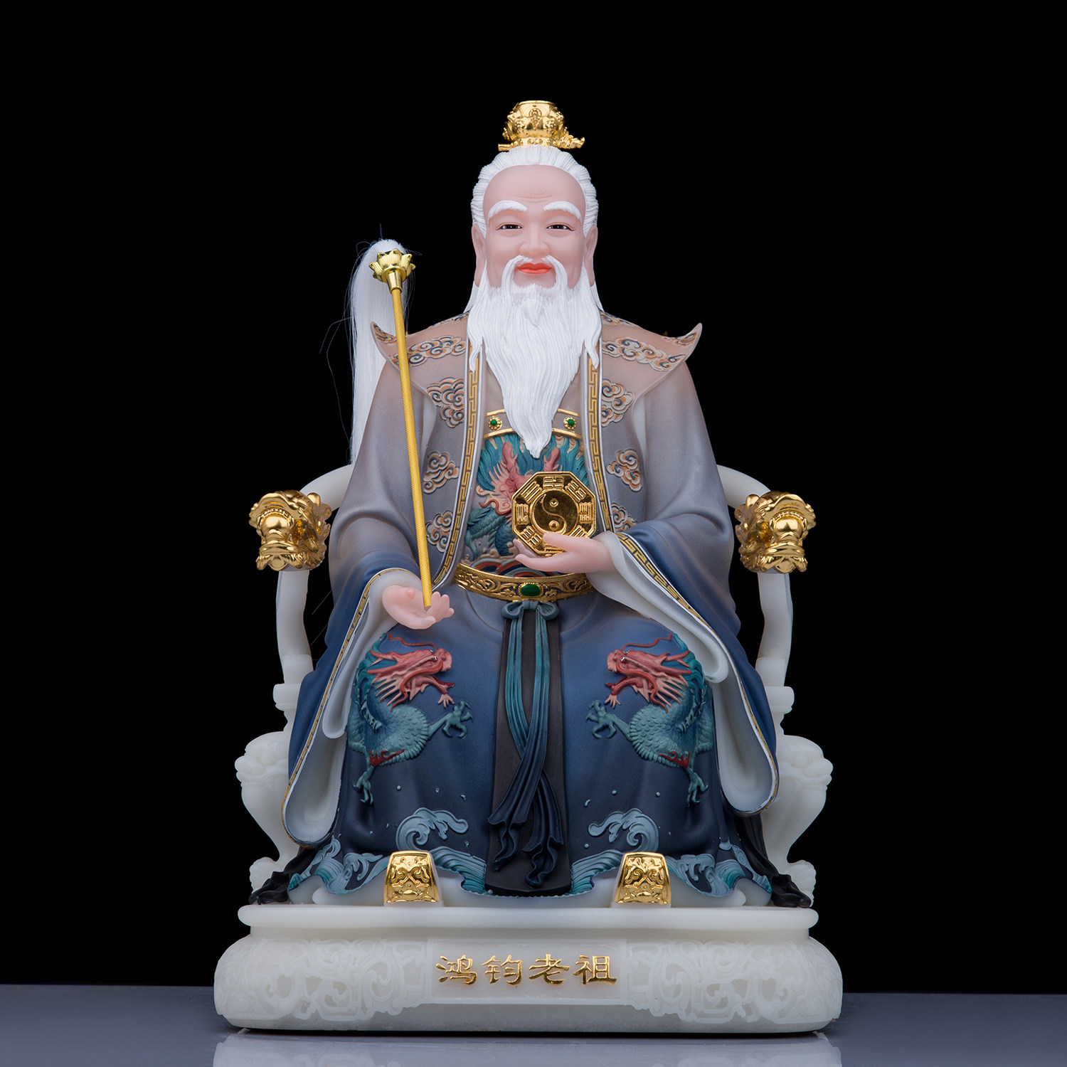 📚 鸿钧老祖神像 汉白玉彩绘鸿钧道人家用祖师爷神像鸿元老祖像摆件