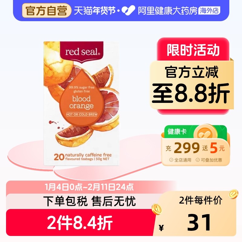 09¥ HU591 Nt2GUjM4bOZ¥ https://m.tb.cn/h.7HlfNaV REDSEAL/红印水果茶血橙覆盆子叶茶包冷热20袋盒血橙茶泡水苹果 --------------------- 【原售价】79元 【现售价】43元。