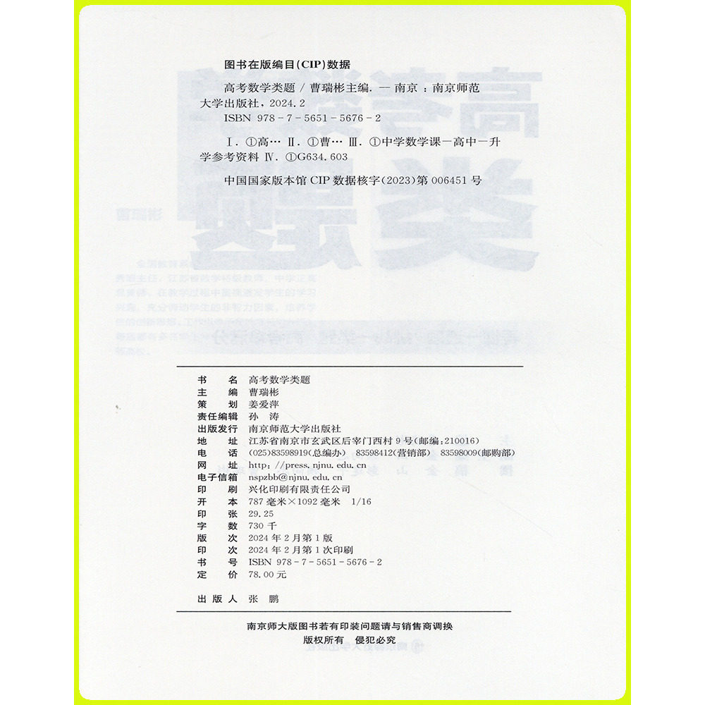 97¥ CZ057 Ipar570FZhG¥ https://m.tb.cn/h.iJSf251 2026新版高考数学类题曹瑞彬解题思路与方法技巧举一反三高一二三南京师范大学出版社高考模拟常考题型高考真题900道重难点解析书 --------------------- 【原售价】78元 【现售价】46.8元。