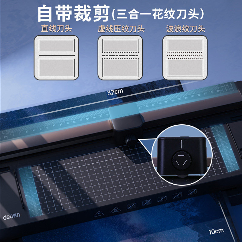 📚 得力14377切刀过塑机A3A4照片塑封机办公商用家用小型过胶机封膜机3寸5寸6寸7寸8寸压膜机热裱覆膜机带裁纸刀