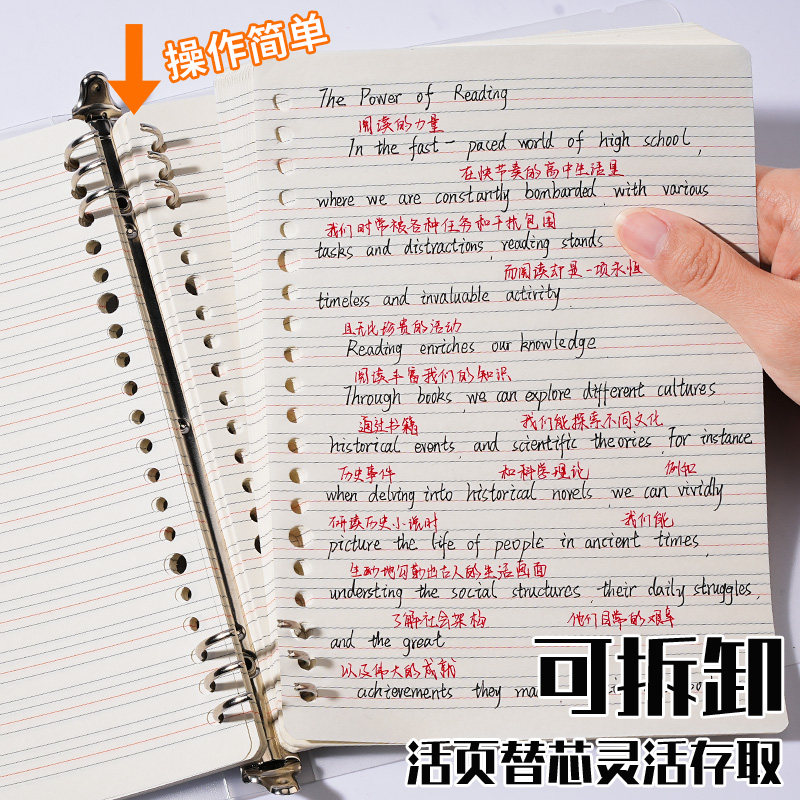 📚 B5英语不硌手活页本替芯加厚A5初高中学生单词本四线三格专用练习本可拆卸夹扣替换手抄英语知识点笔记本