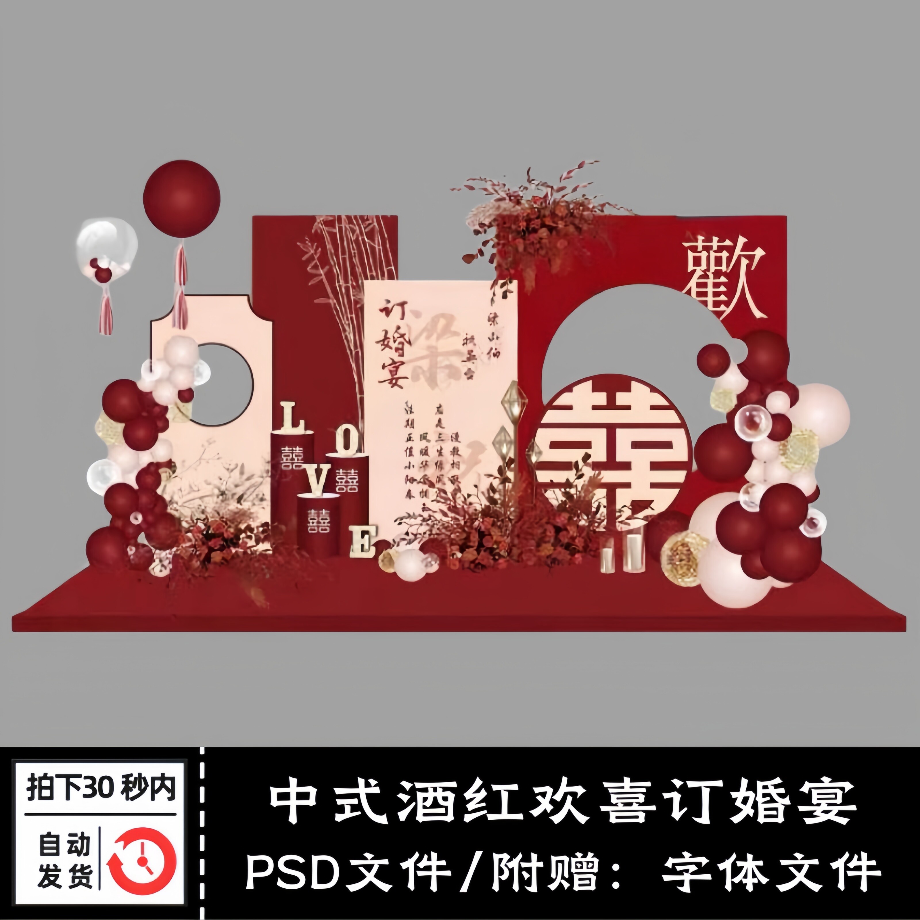 📚 新中式婚礼舞台背景墙婚庆布置效果图KT板制作设计PSD分层素材