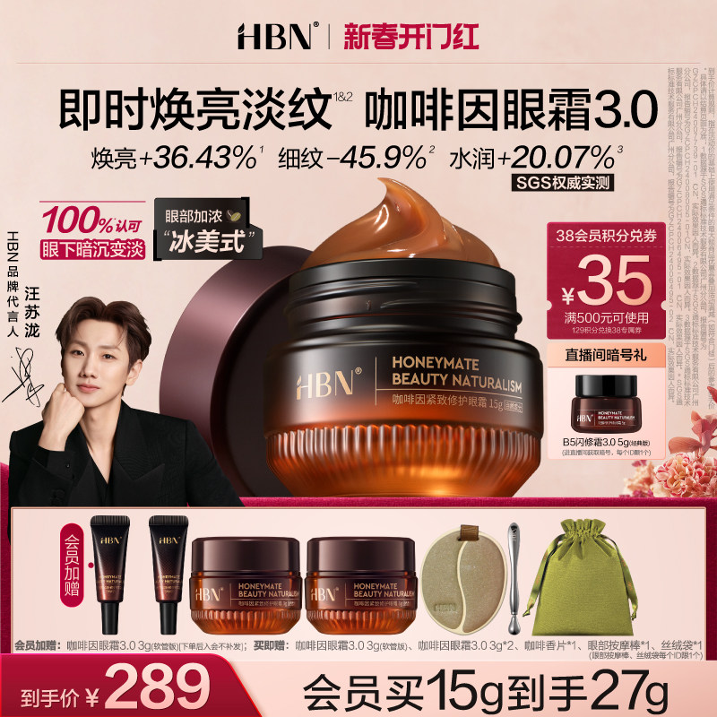 📚 【汪苏泷同款】HBN咖啡因眼霜3.0冰美式提亮眼周淡纹提拉抗皱保湿