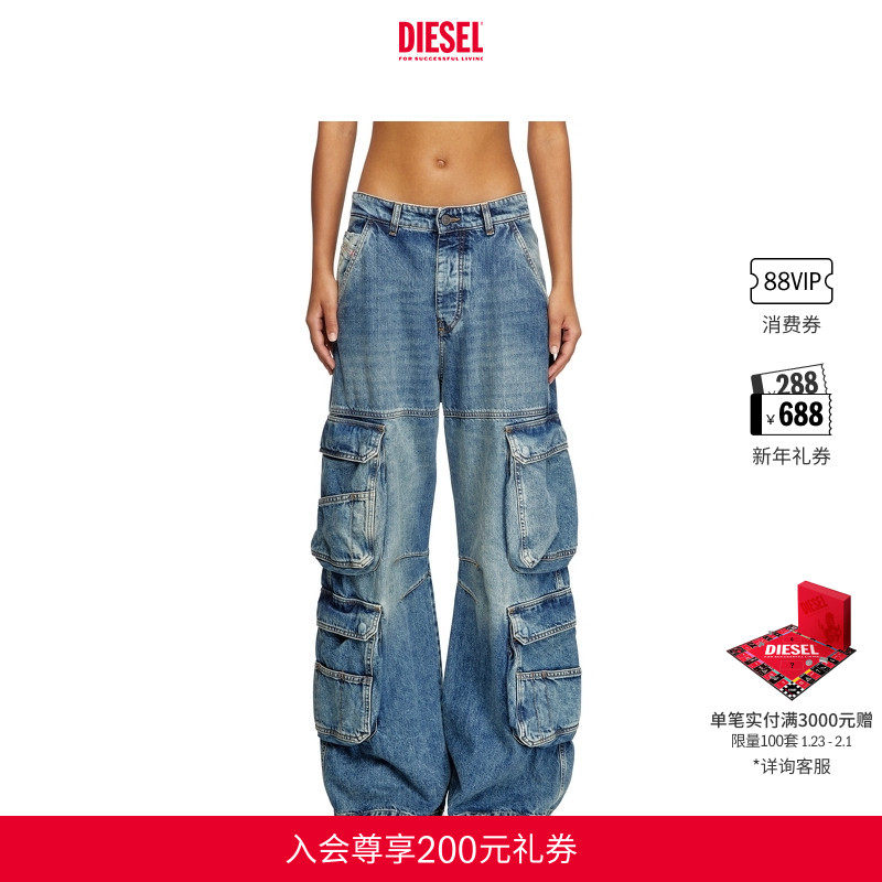 📚 DIESEL女士D-CARGO低腰多口袋工装机能风宽松阔腿牛仔裤