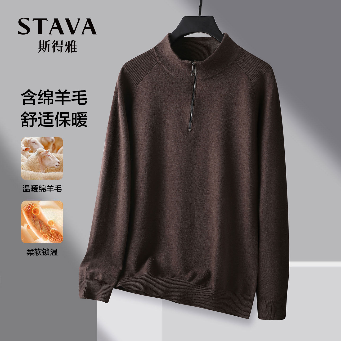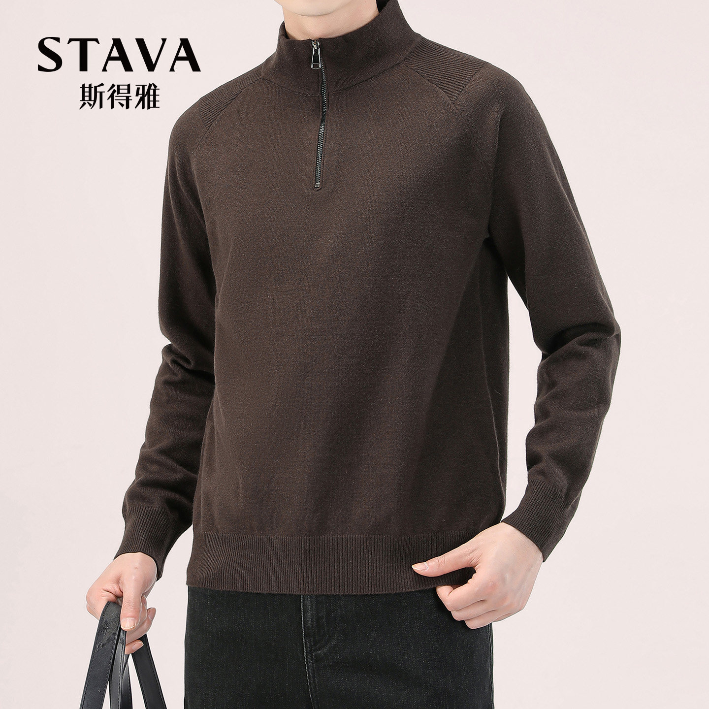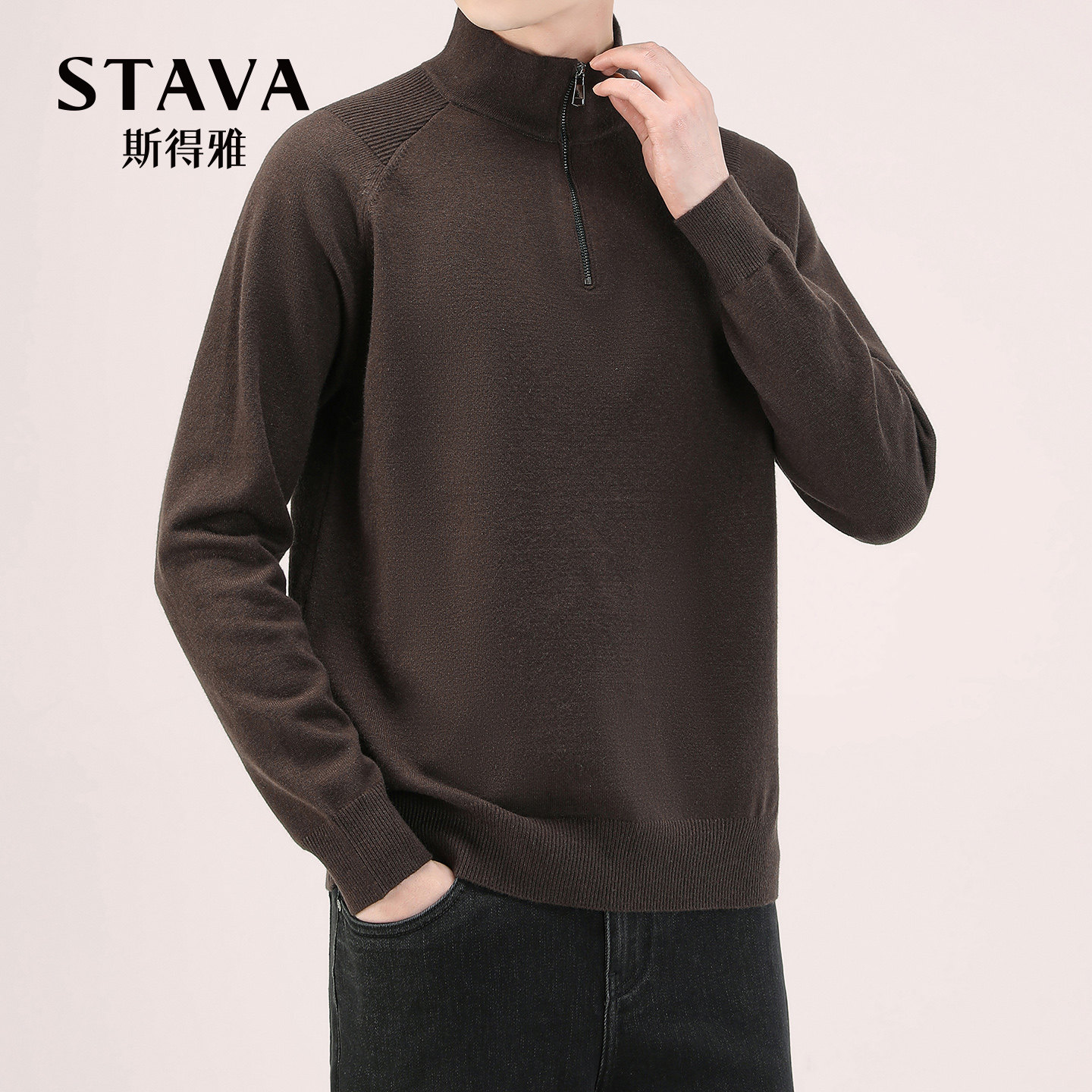 📚 【含绵羊毛】斯得雅半拉链立领针织衫男秋冬新款半高领毛衫男毛衣
