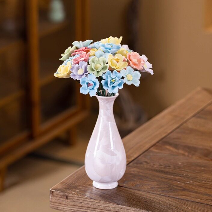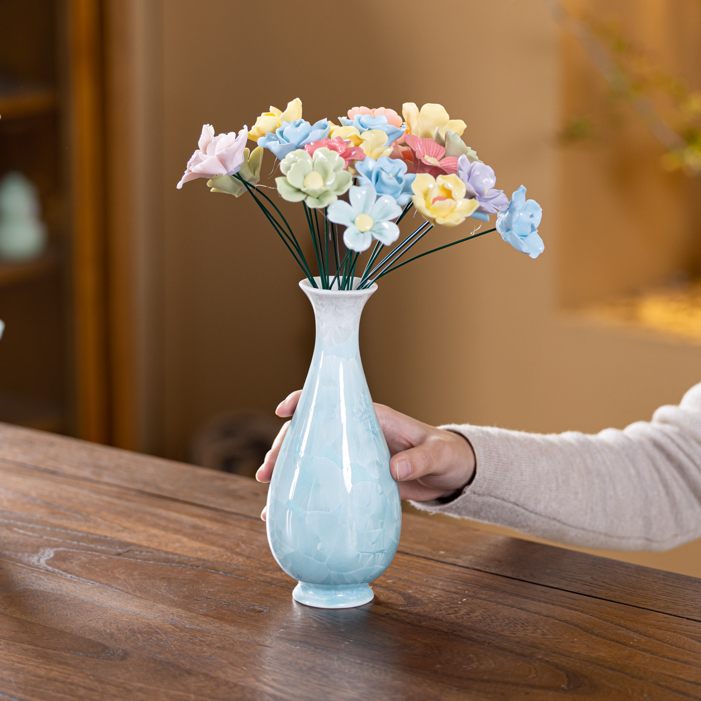 📚 陶瓷中号结晶釉花瓶搭配陶瓷花简约摆件玄关博古架家用清新装饰品