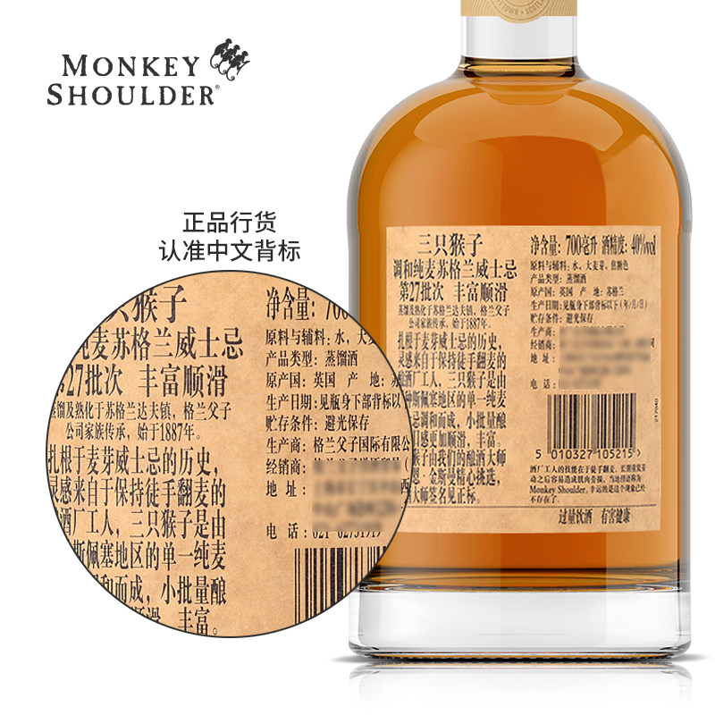 📚 三只猴子威士忌调和纯麦苏格兰威士忌Monkey Shoulde进口洋酒