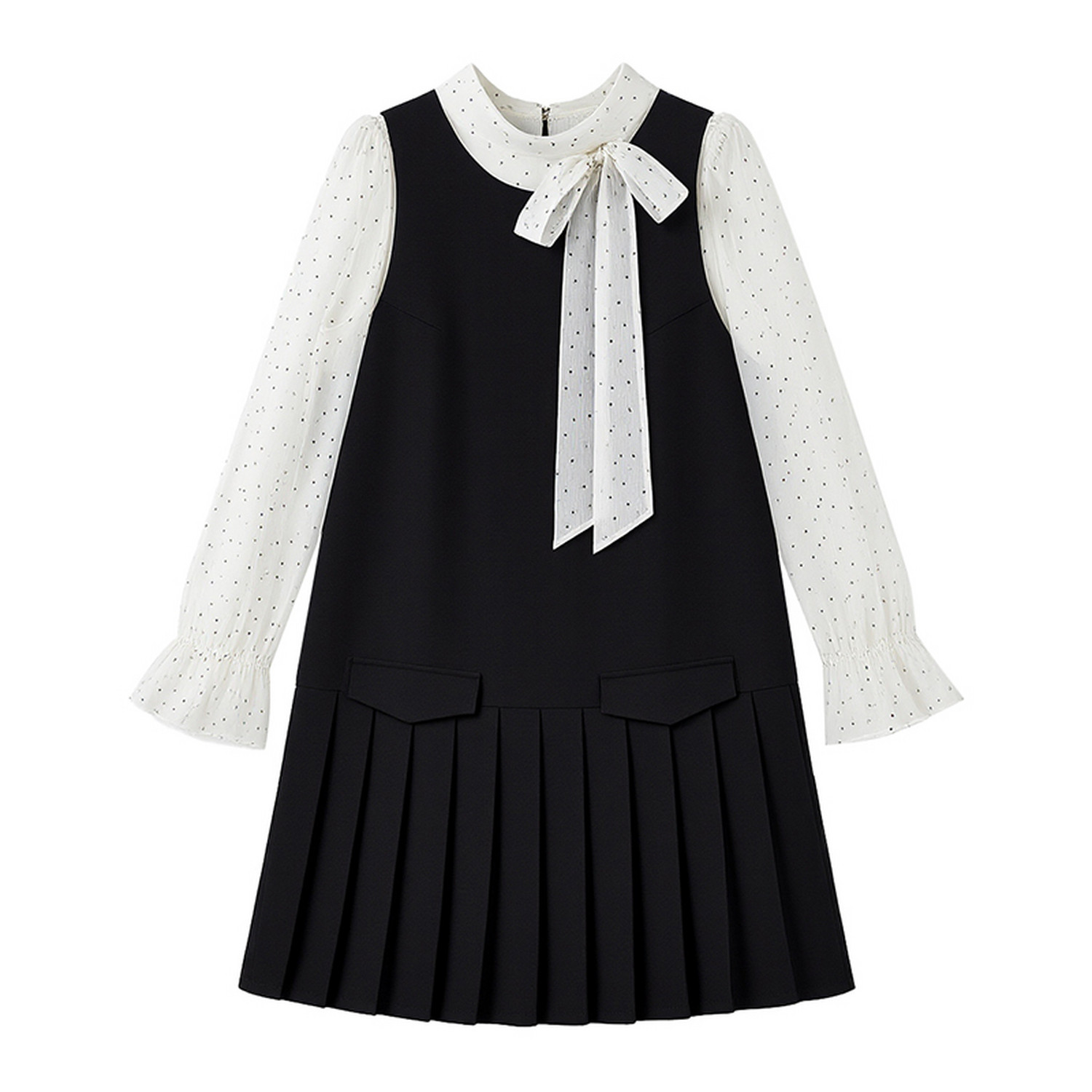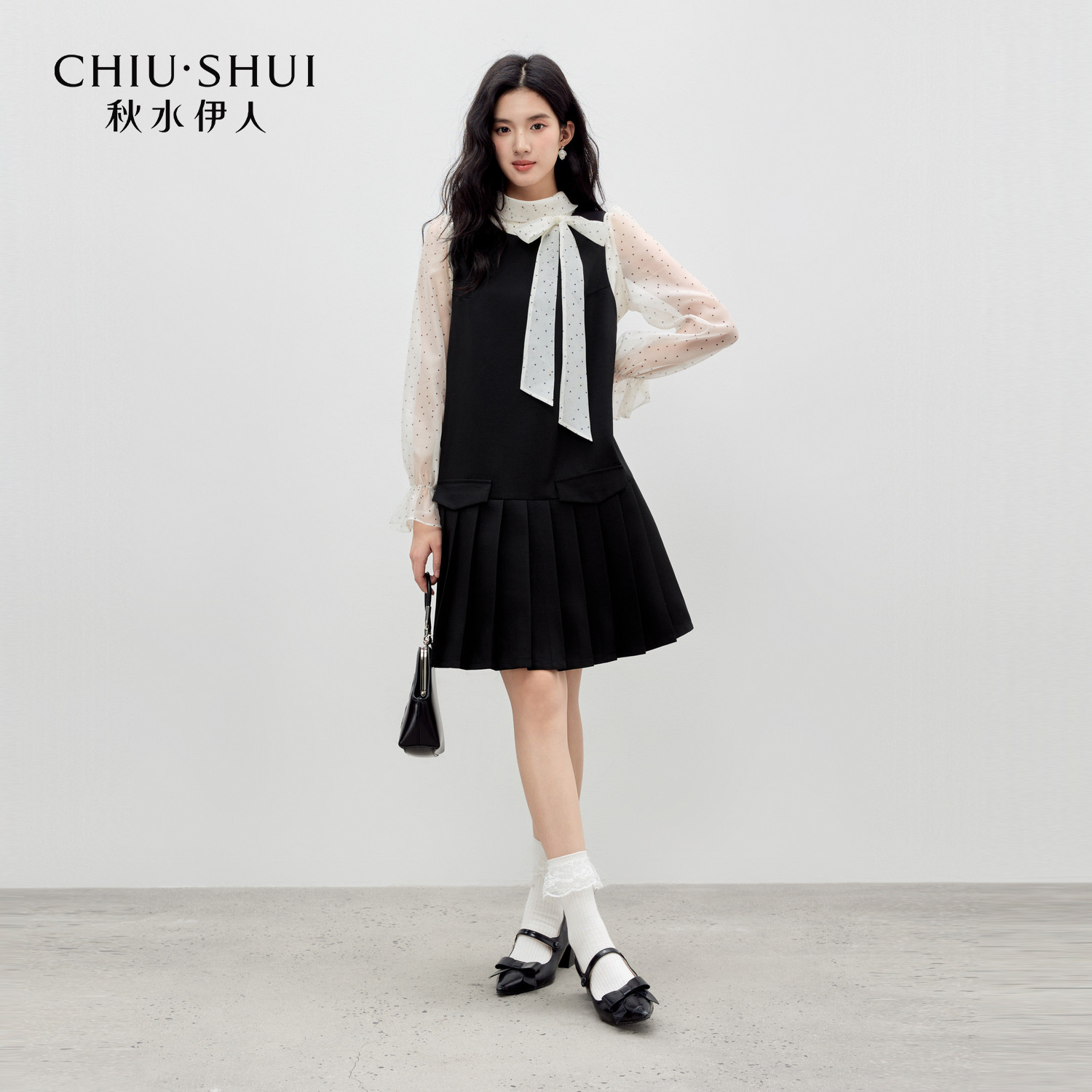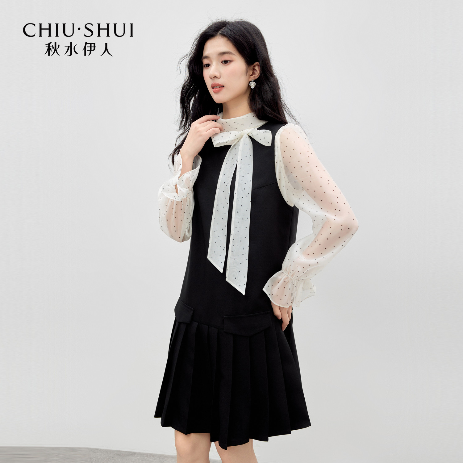 📚 秋水伊人连衣裙两件套2026年春季新款女装通勤蝴蝶结休闲裙子套装
