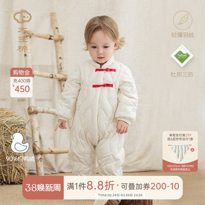 📚 木生棉宝宝羽绒连体衣外出保暖冬季婴儿过新年喜庆哈衣爬服国风