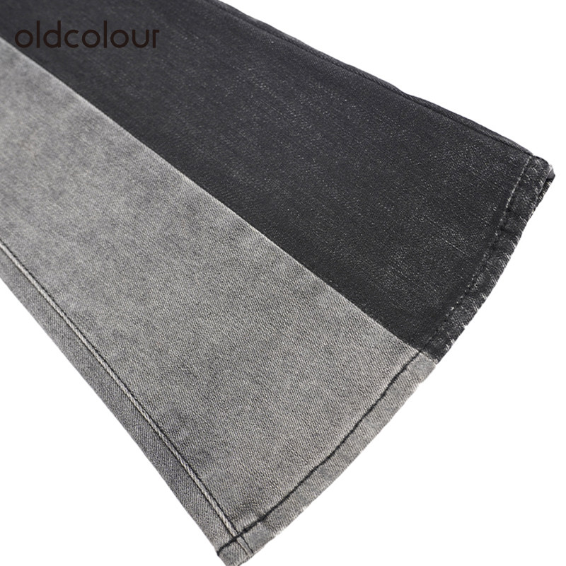 📚 oldcolour复古高腰牛仔裤冬季新款设计感拼接长款微喇裤O41113148
