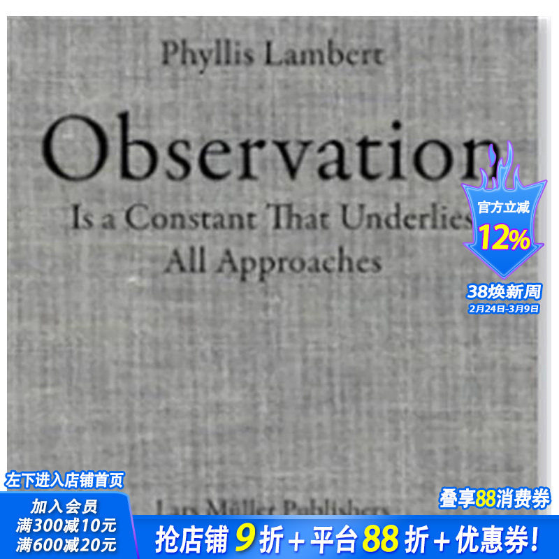 07¥ HU006 2YSTUGU7snB¥ https://m.tb.cn/h.i2uQ2Iv 【现货】英文原版 菲利斯?莱伯特:观察法 Phyllis Lambert: Observation 建筑设计 正版进口图书画册 善优图书 --------------------- 【原售价】385元 【现售价】346.5元。
