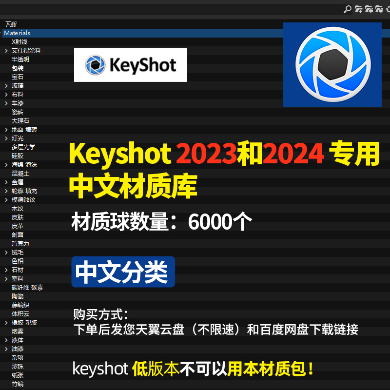 📚 keyshot材质包2023中文布藤竹编织纹宝石纸珍珠硅胶ks2024材质库