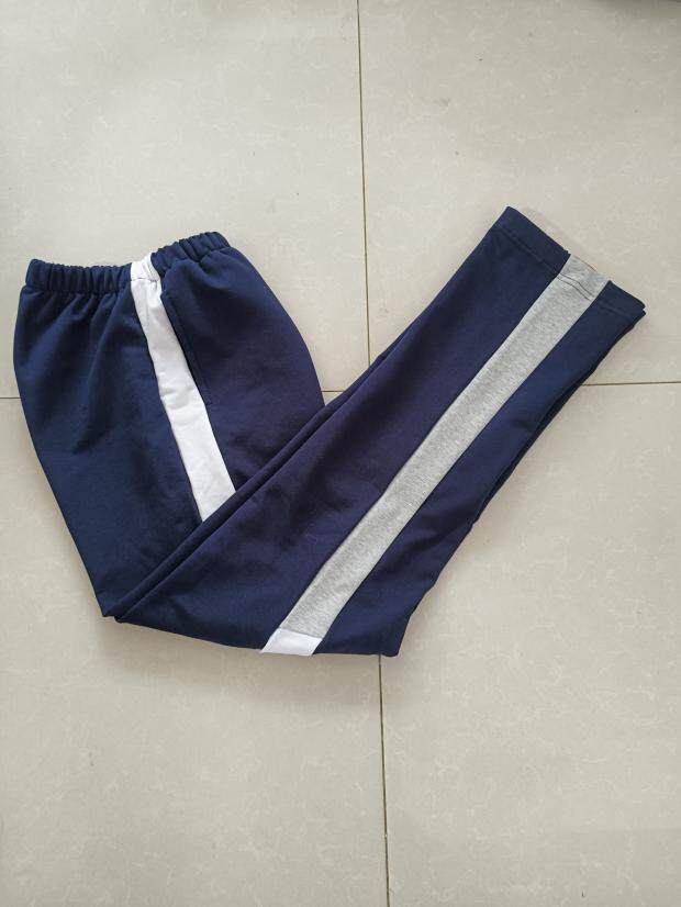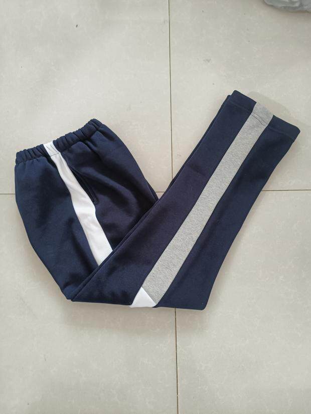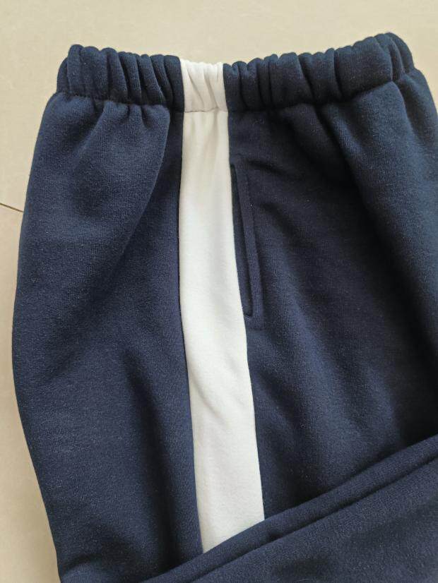 📚 华东台商学校定制校服裤子藏蓝拼5厘米上白下浅灰宽杠纯棉学校裤