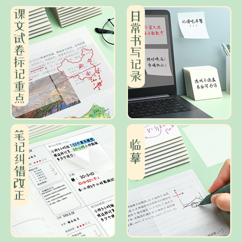 📚 透明便利贴纸便利贴初中生专用可写速干便签贴纸改错便利签小学生用高颜值订正笔记文具错题便签纸粘性标签贴
