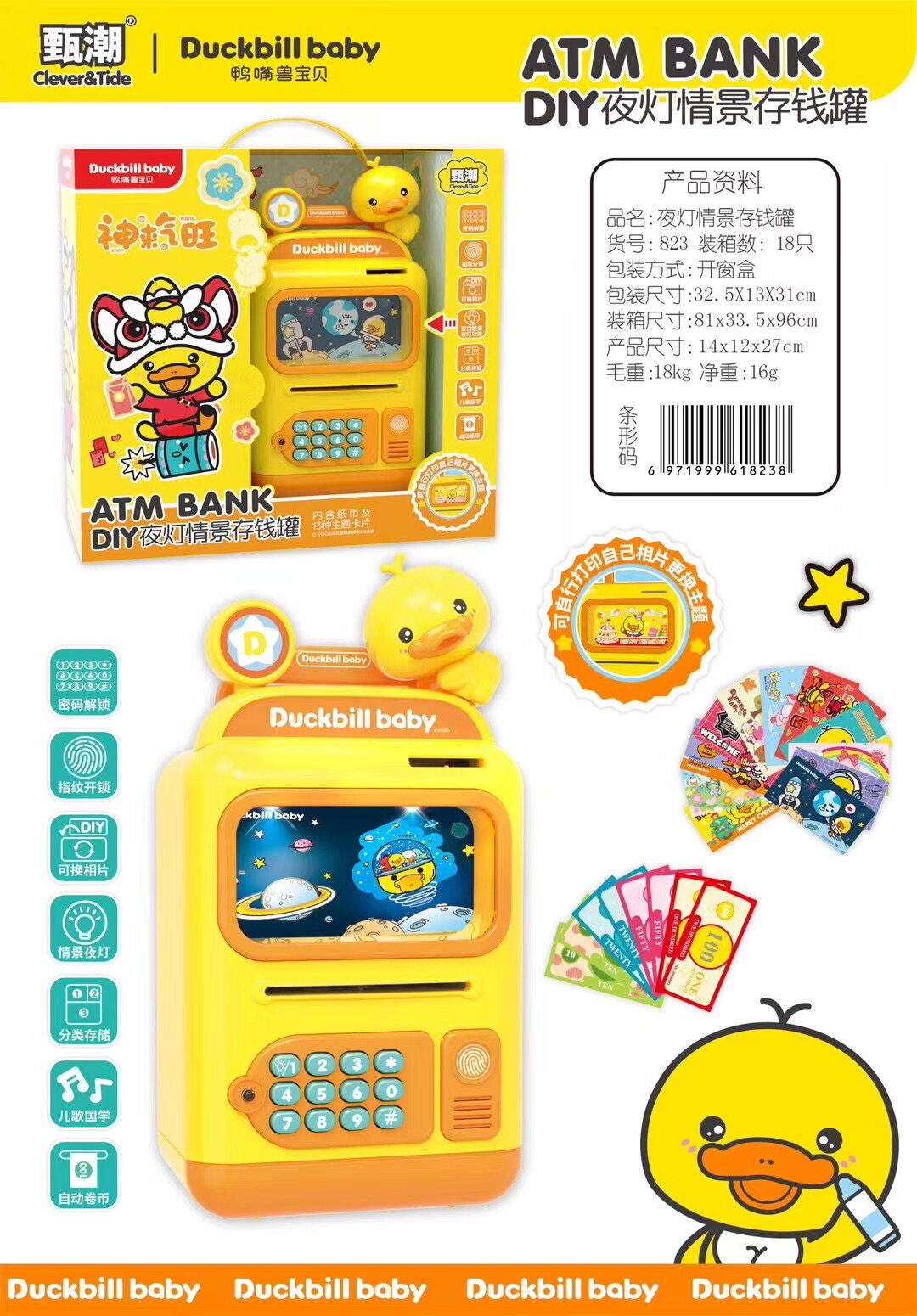 📚 新款甄潮鸭嘴兽DIY夜灯情景存钱罐儿童储存可存取密码保险箱过年