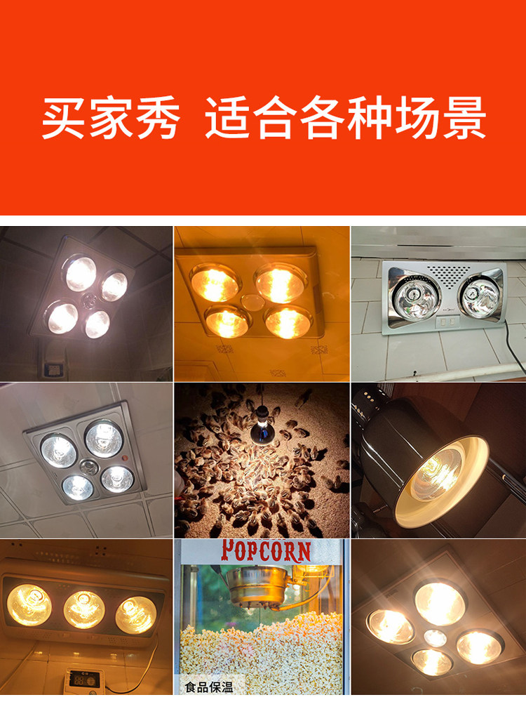📚 浴霸灯泡取暖卫生间275W防水防爆灯暖浴室中间LED照明加粗暖灯