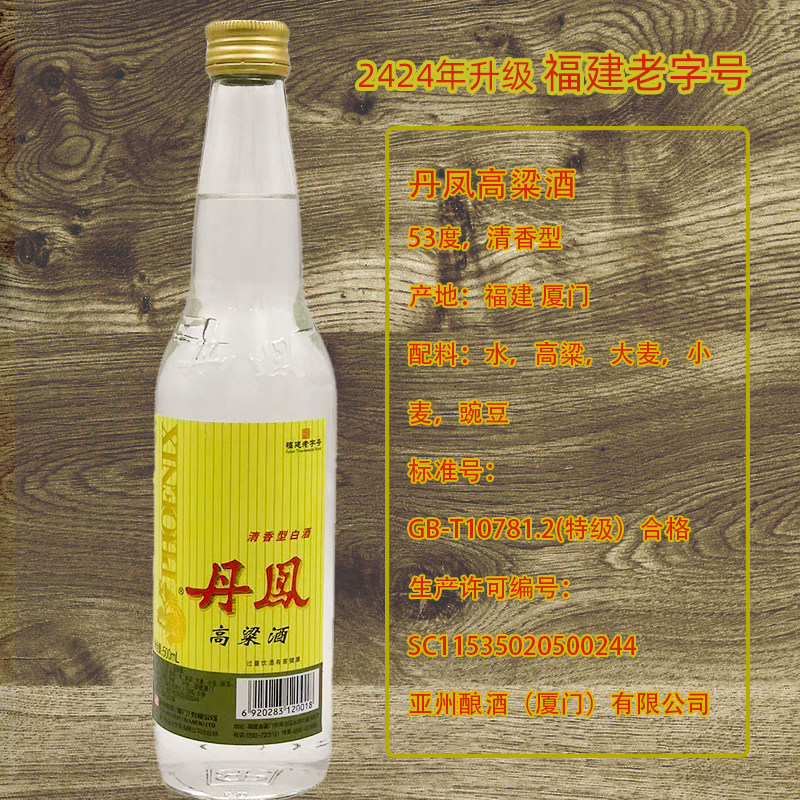 📚 怀旧老款纯粮高粱酒清香型丹凤酒53度厦门亚酿53vol%裸瓶高粱2瓶