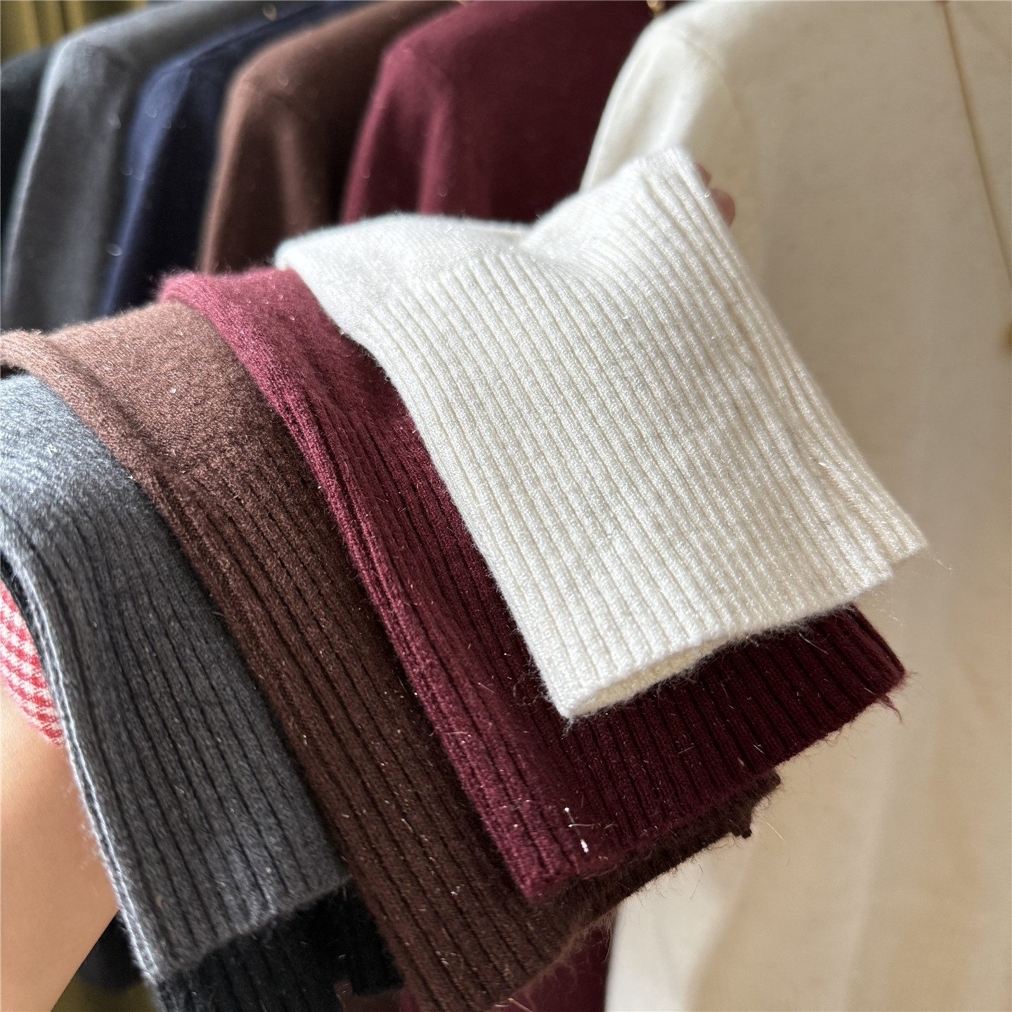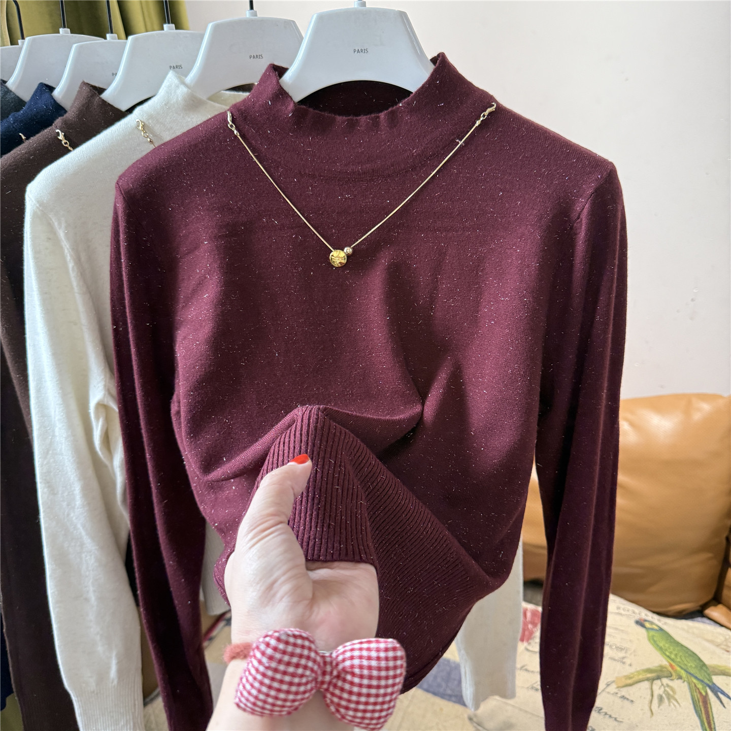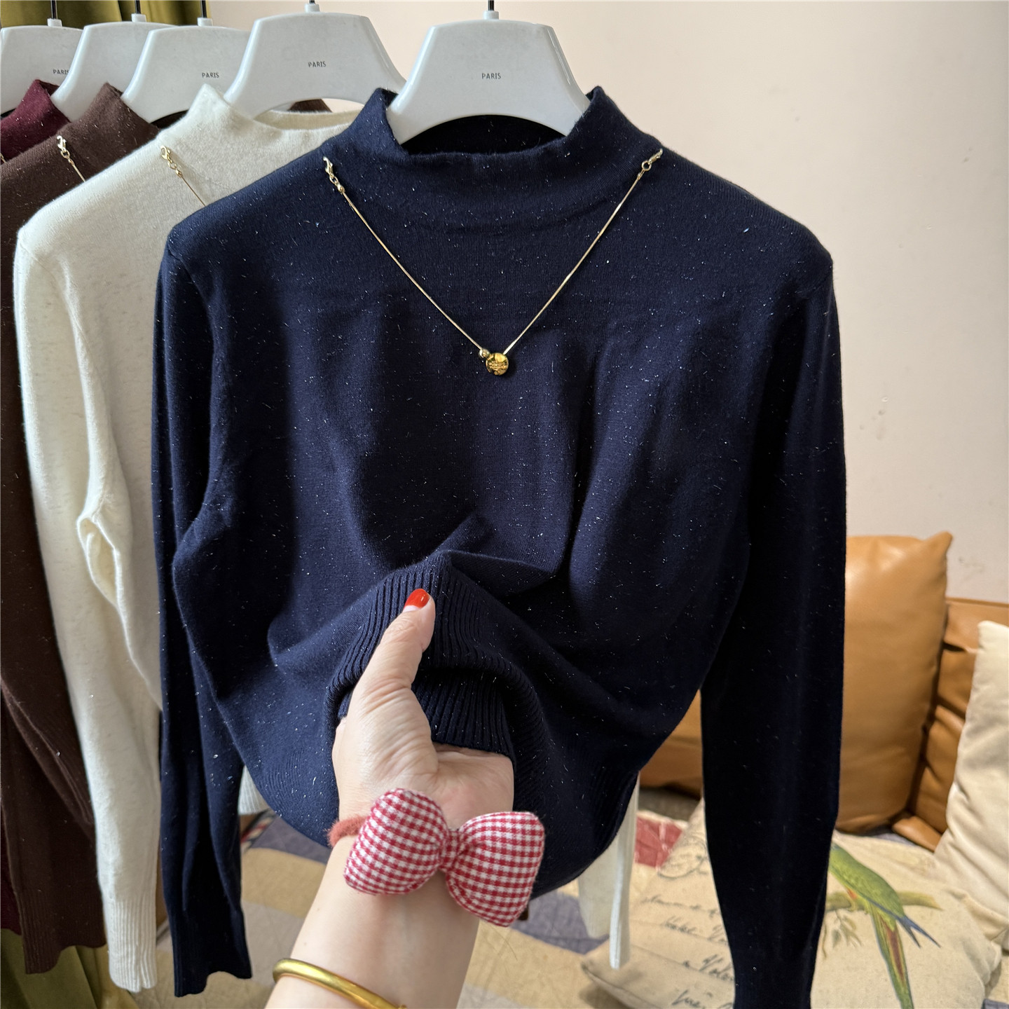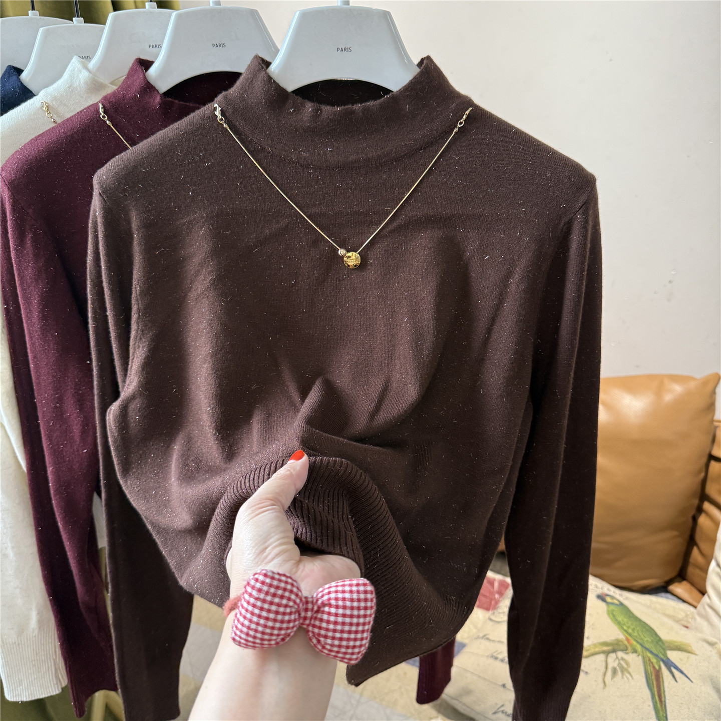 📚 短款柔软半高领链条针织衫女长袖外穿打底毛衣上衣纯色百搭简约