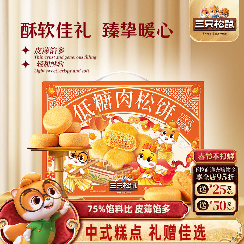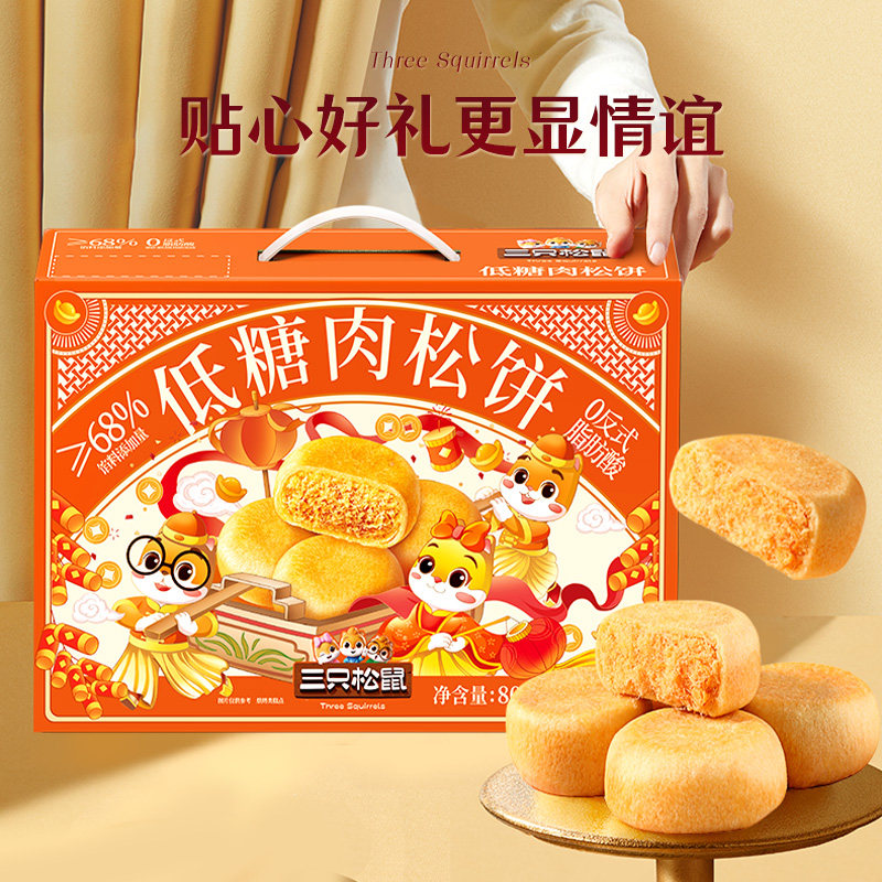 📚 三只松鼠_肉松饼礼盒营养早餐特产传统中式糕点心零食品过年送礼