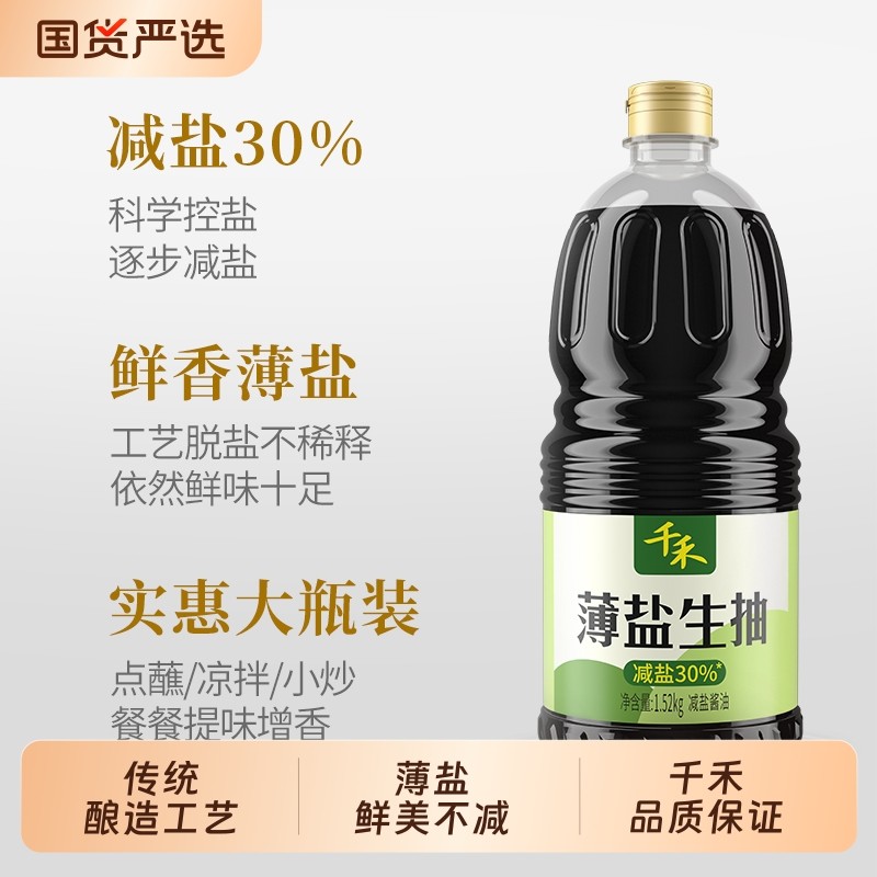 📚 千禾薄盐生抽酱油1.52KG减盐30%炒菜家用酿造食盐鲜味实惠凉拌