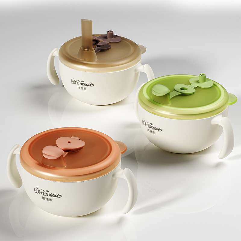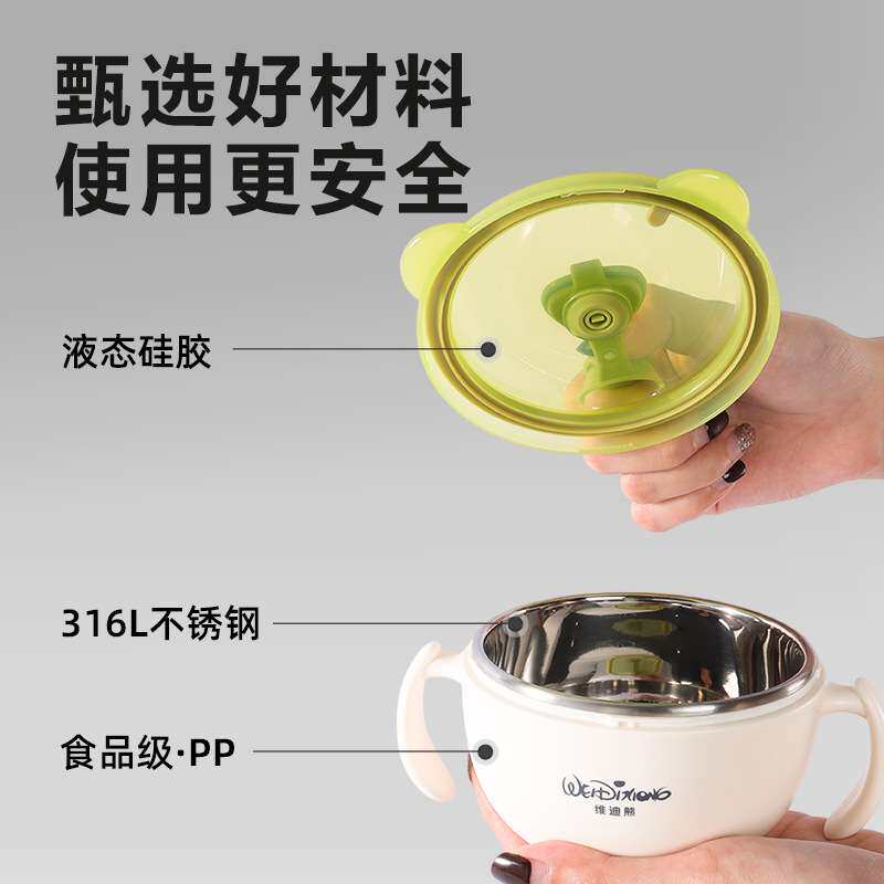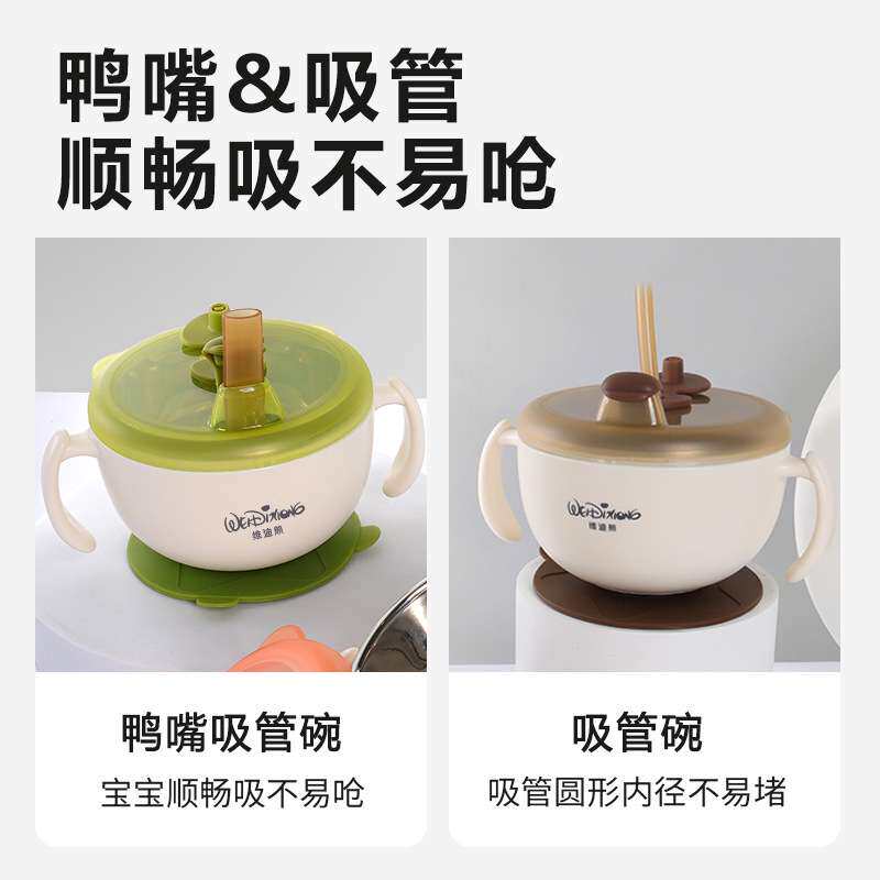 📚 维迪熊婴幼儿辅食碗宝宝专用喝汤吸管碗迷糊杯喂水碗316L不锈钢碗